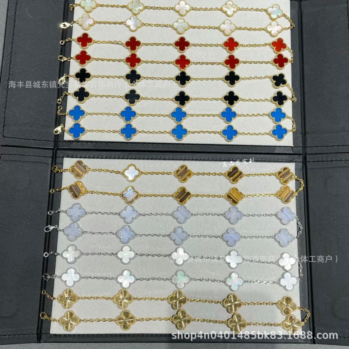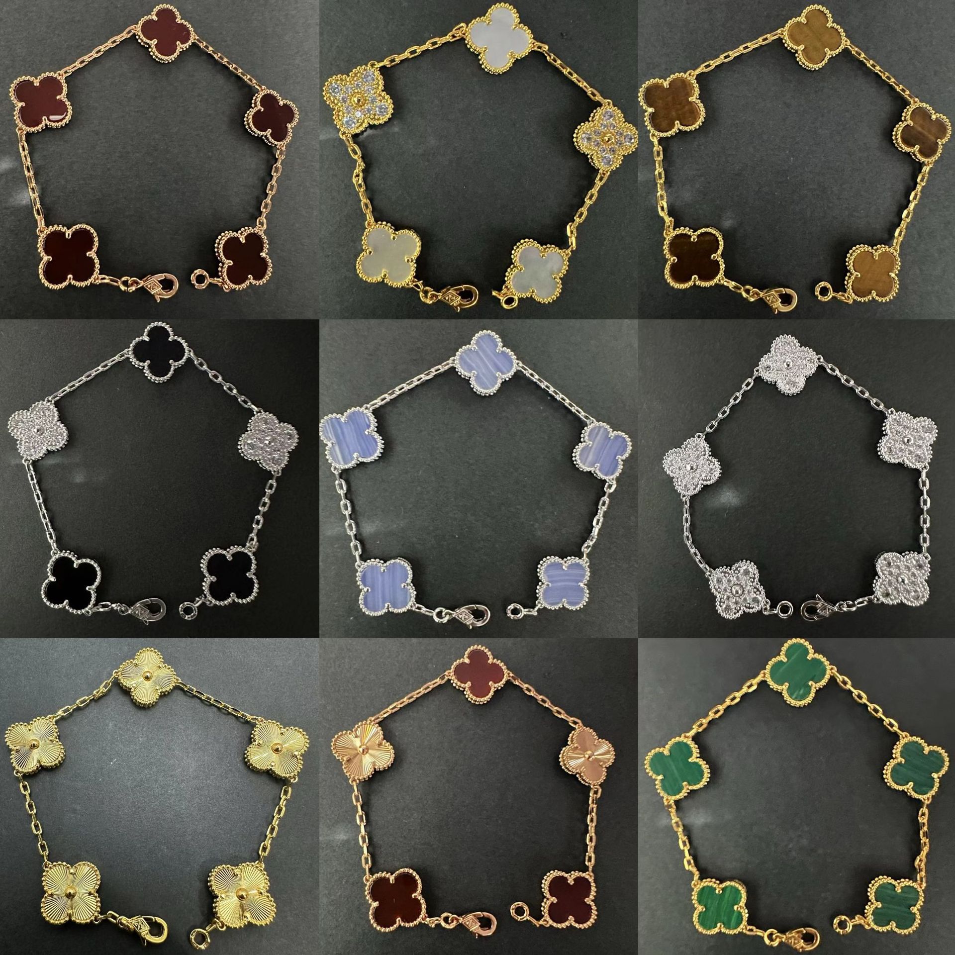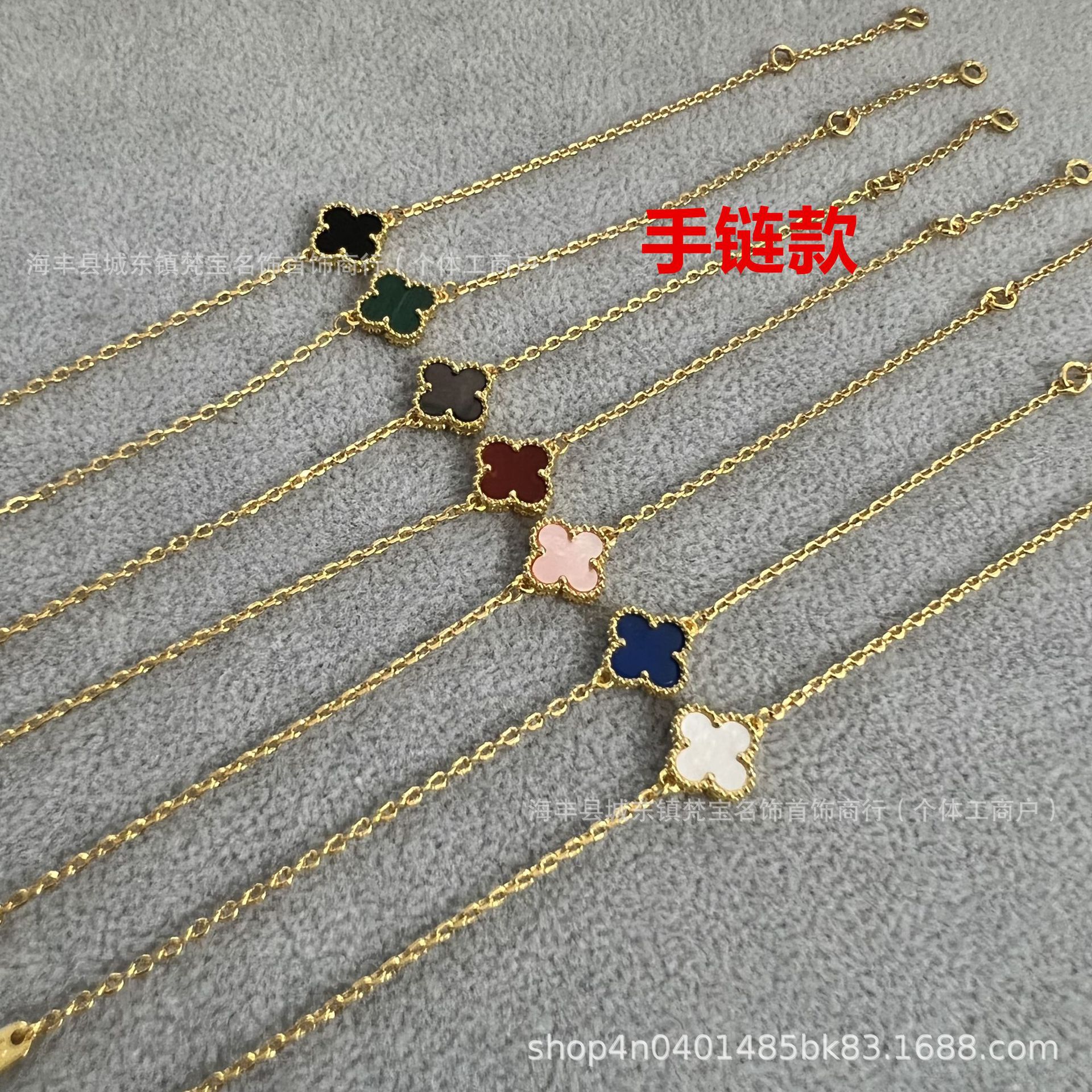 四叶草五花手链女18k高版本v金双面幸运草白贝母花朵不掉色手饰品