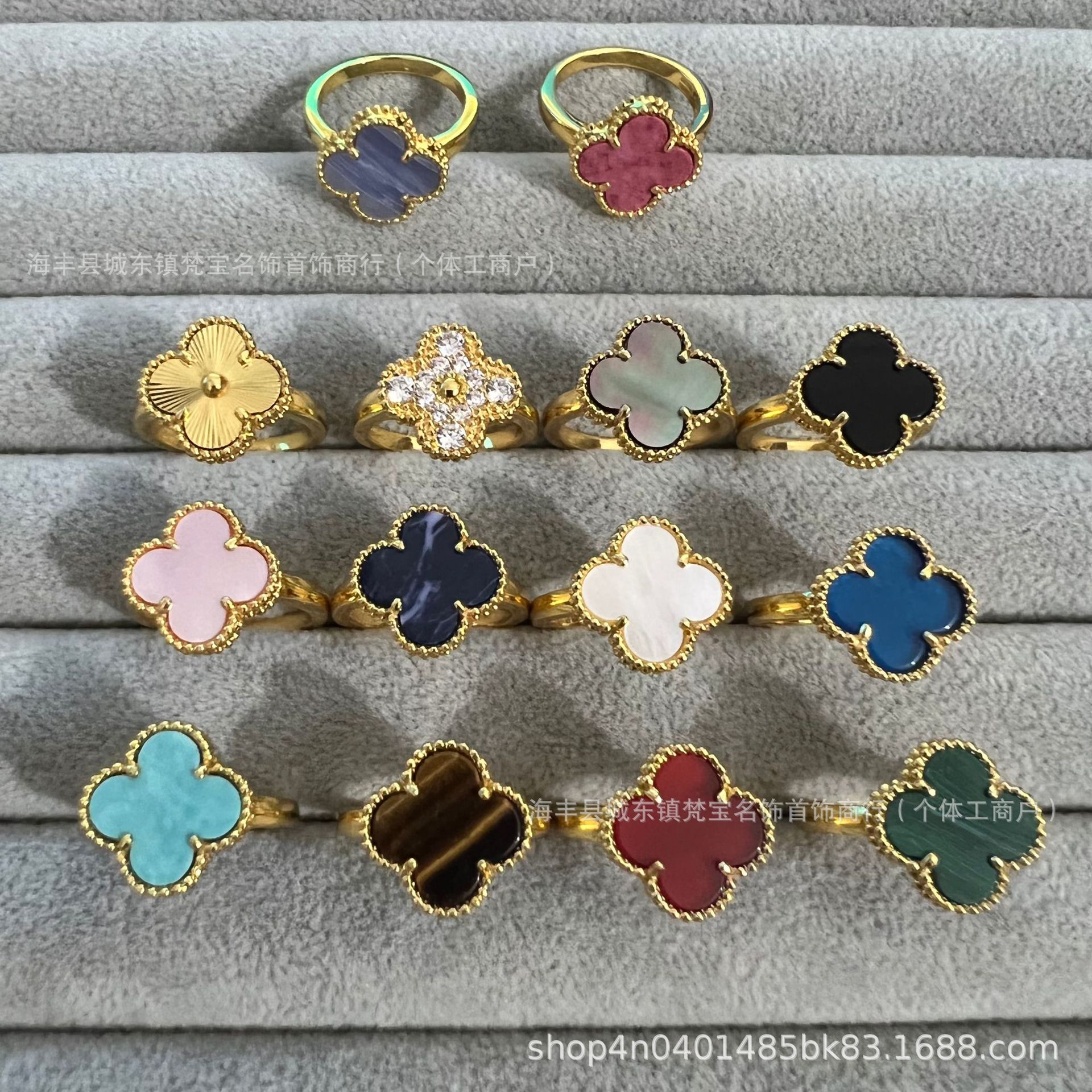 v金高版本四叶草戒指高级时尚百搭18K玫瑰金天然白贝母红玛瑙戒指