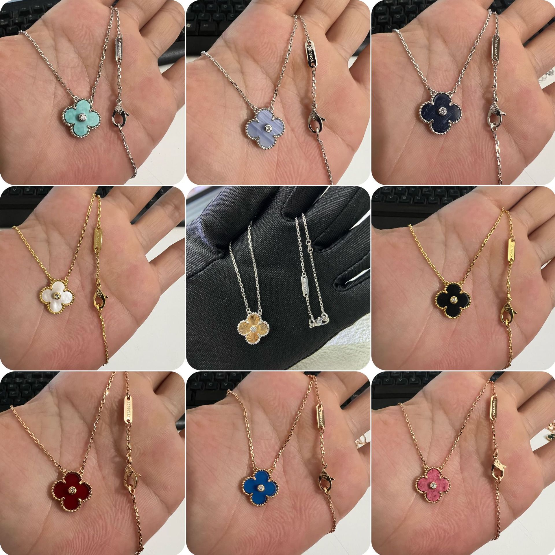 四叶草迷你手链单花满钻高版本玫瑰金天然贝母百搭项链红玉髓批发