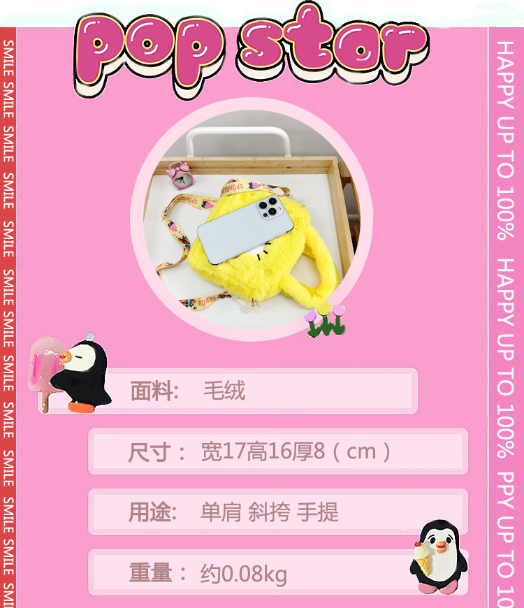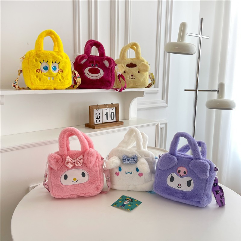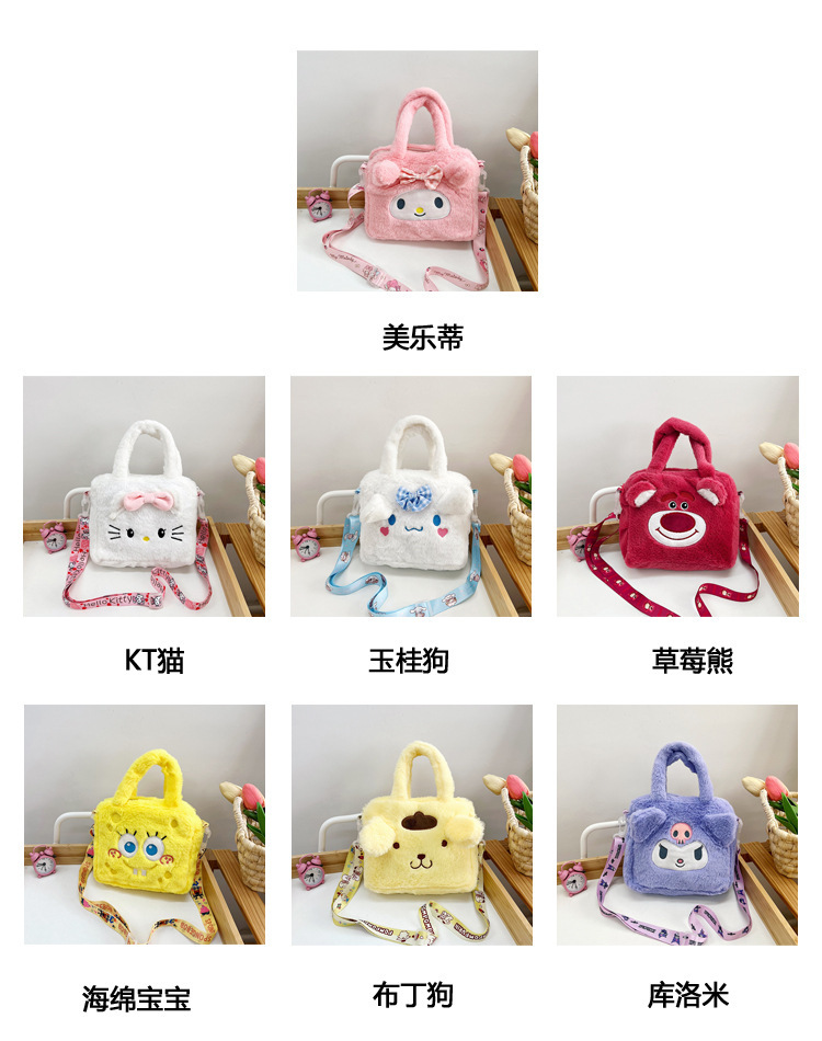 新款卡通美乐迪可爱海绵宝宝斜跨包玉桂狗少女毛绒玩具包一件代发