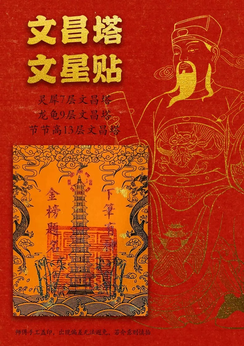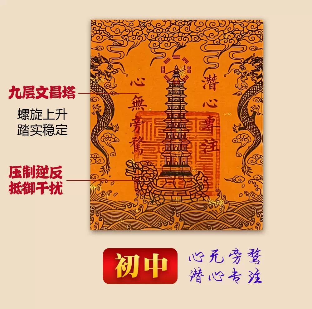 オリジナル九階十三階文昌塔龍亀文曲魁星文昌シールお守り携帯電話机書斎