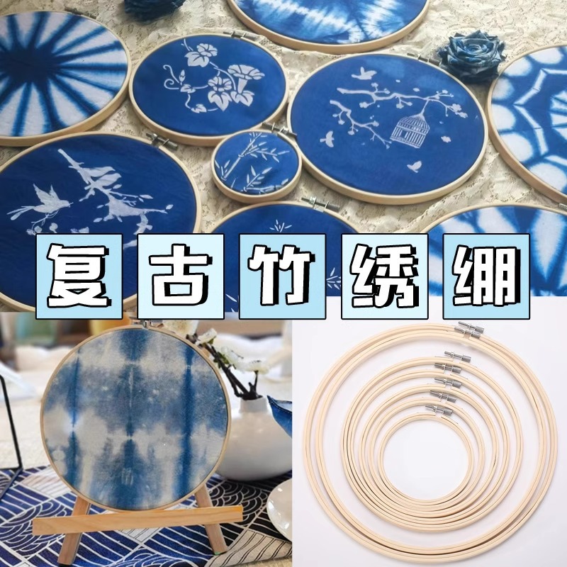 竹绣绷圈扎染手工diy材料包学生制造工艺品布料方巾工具作品展示