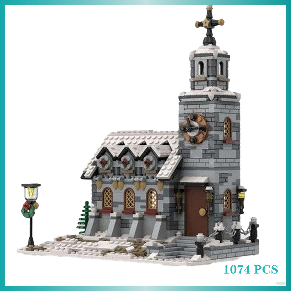 クロスボーダー玩具互換レゴ人気建築モデル国産小粒積み木moc58208冬の教会