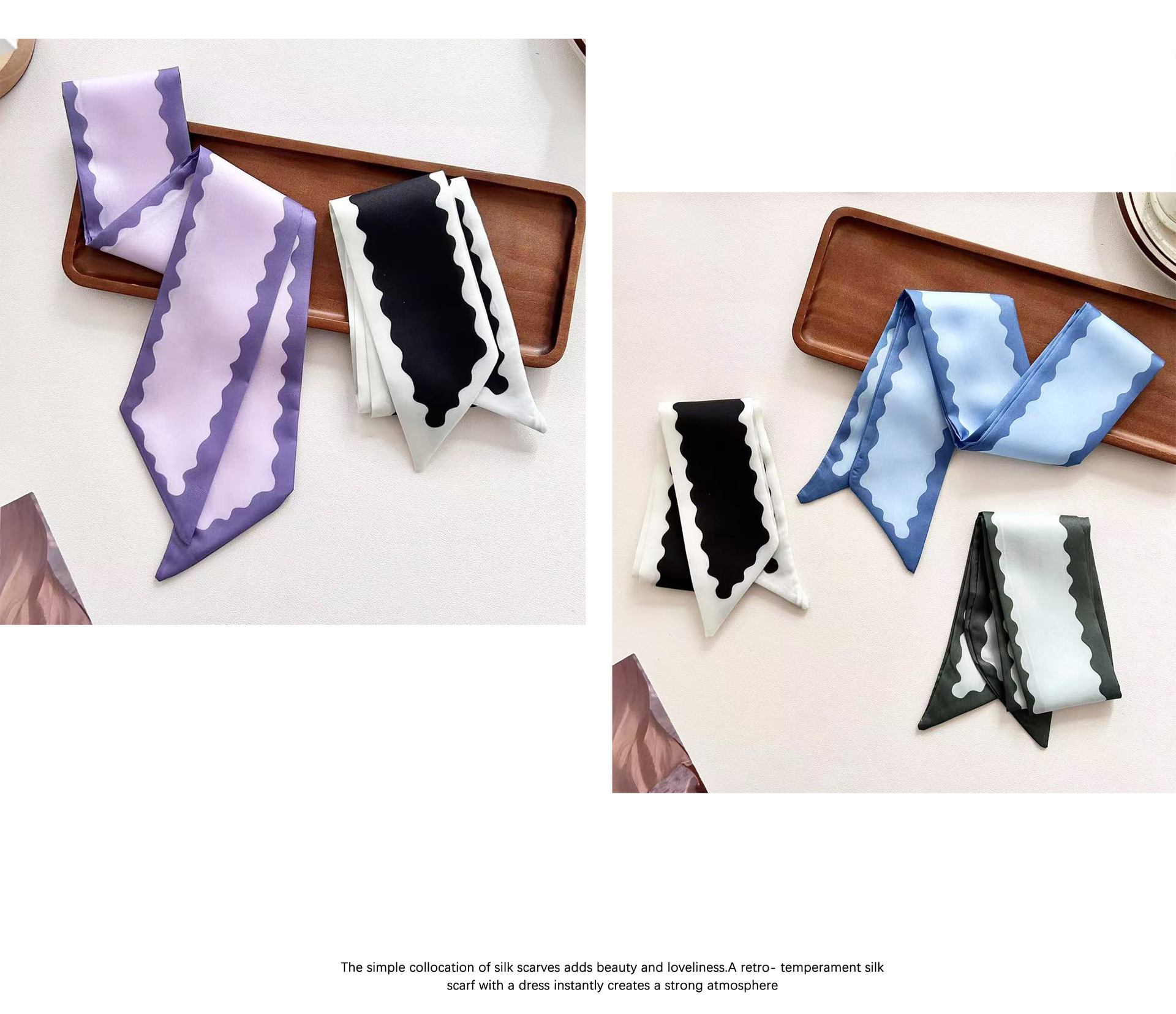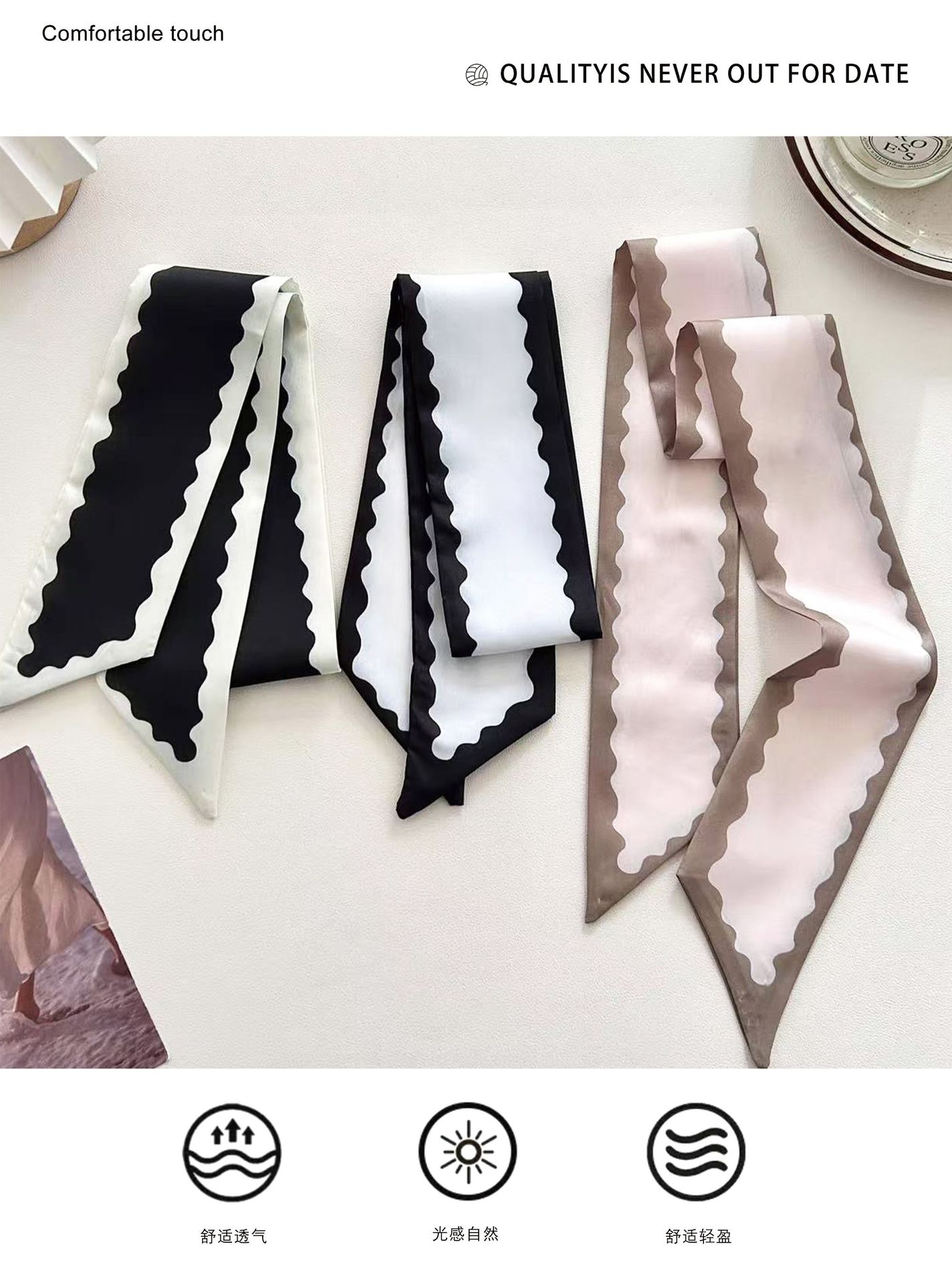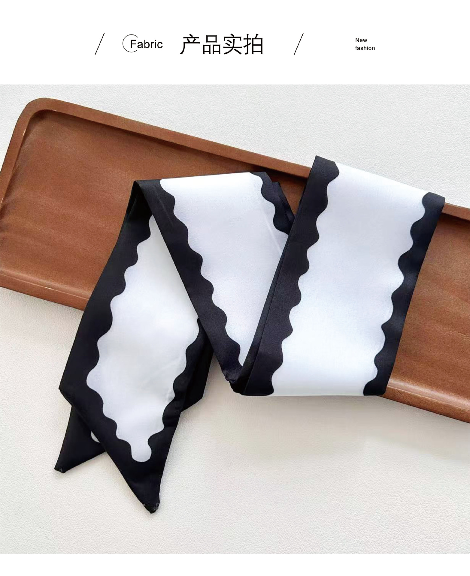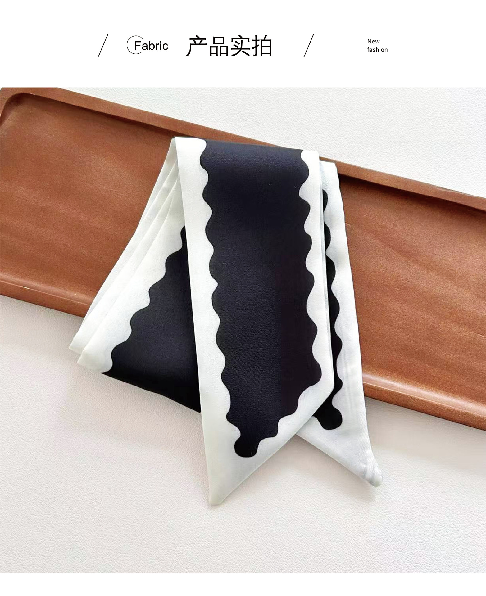 韓国系の長いストライプの白黒の波点のシルクタオルの春夏の新型の首のスカーフの装飾の百合の気質はシャツのリボンを組み合わせます。