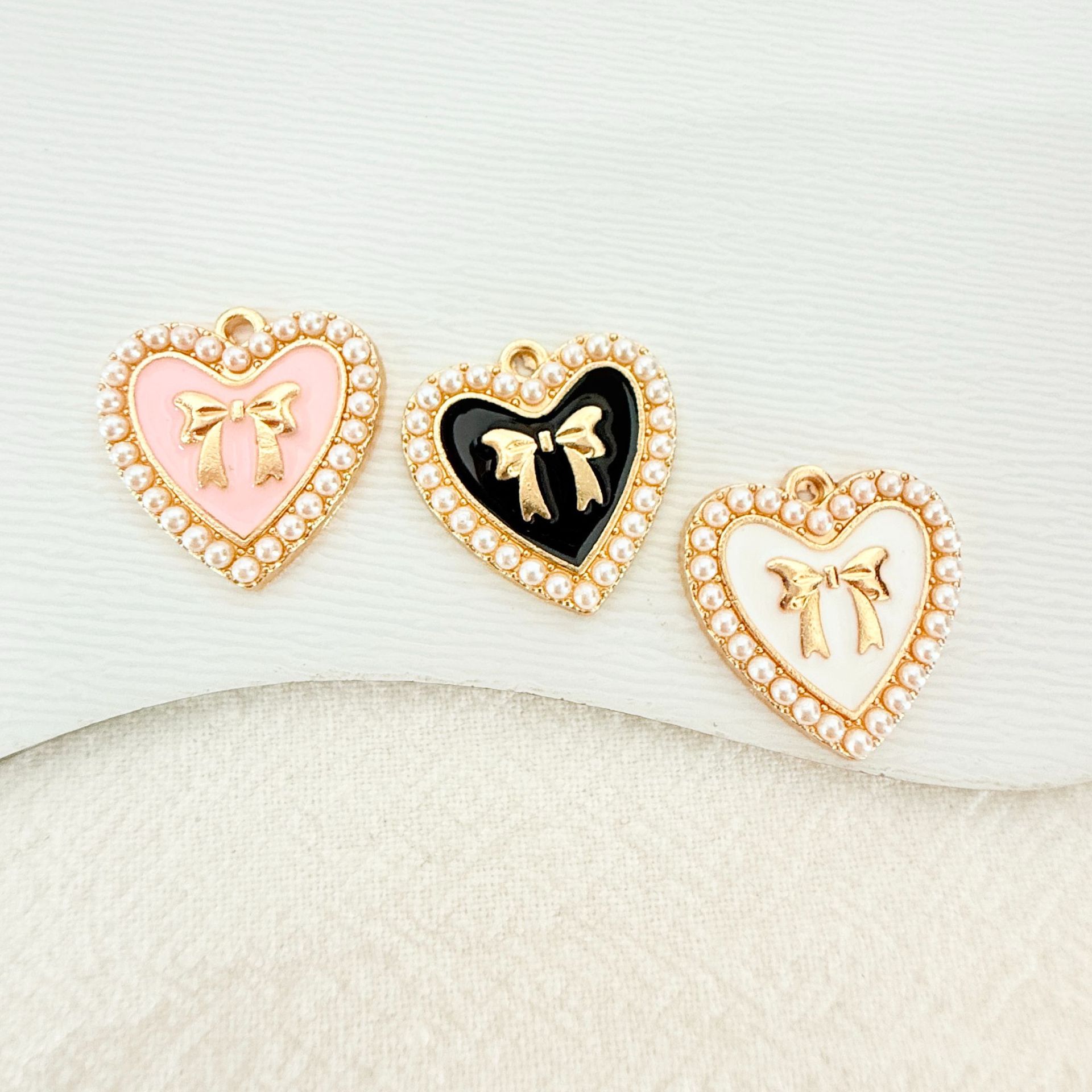 DIY ハート型リボン パール合金 ドリップオイル素材 アクセサリー(12905)