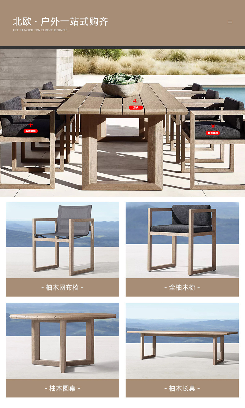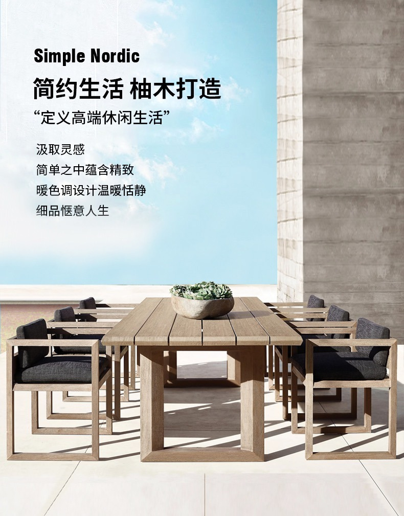 北欧カスタマイズされた屋外パティオテーブルと椅子ガーデン屋外チークバルコニーテーブルと椅子屋外防水日焼け止め屋外家具