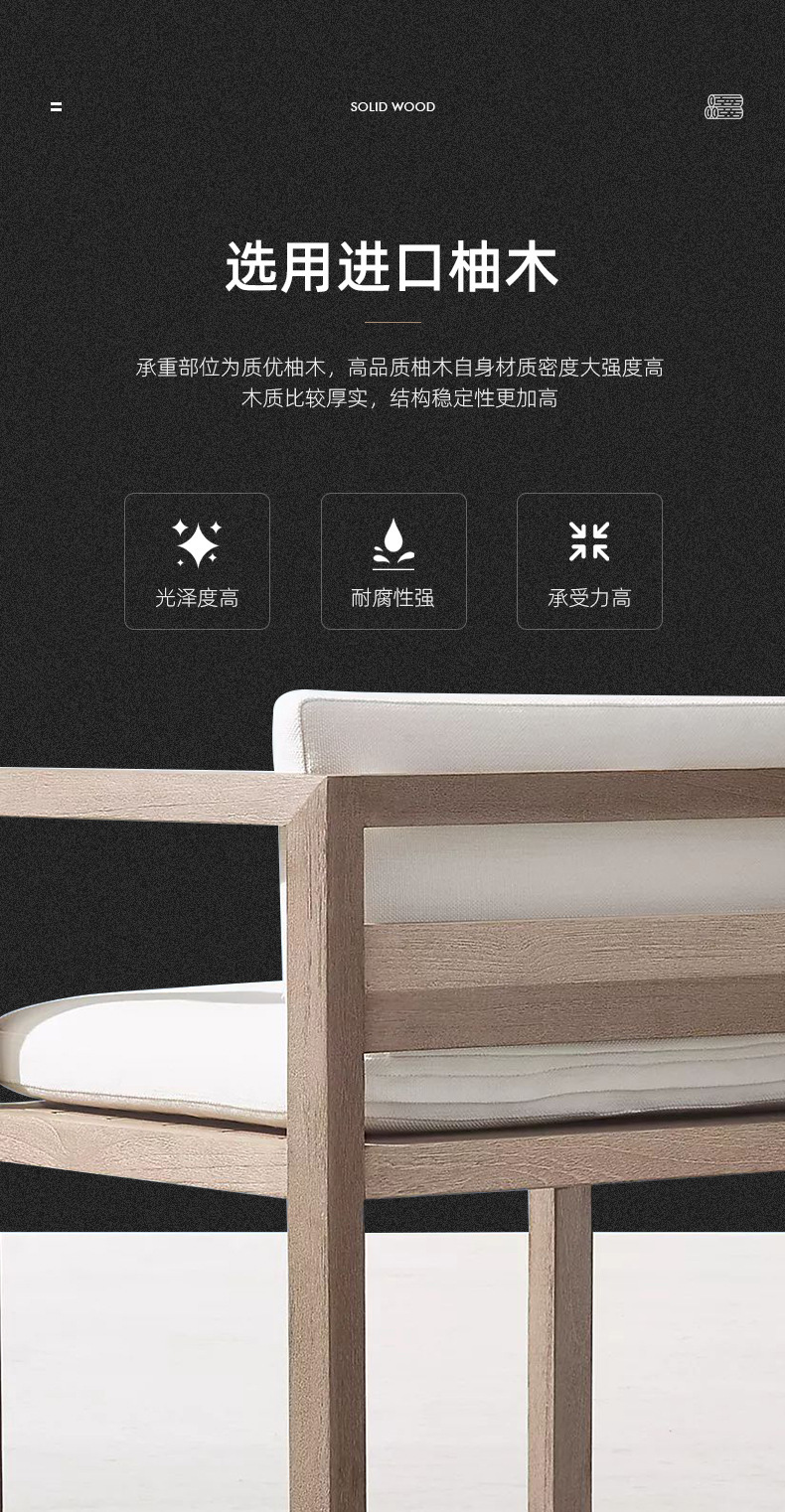 寂風オーダーメード屋外ソファ庭屋外チーク材バルコニーソファ防水日焼け止めガーデン屋外家具