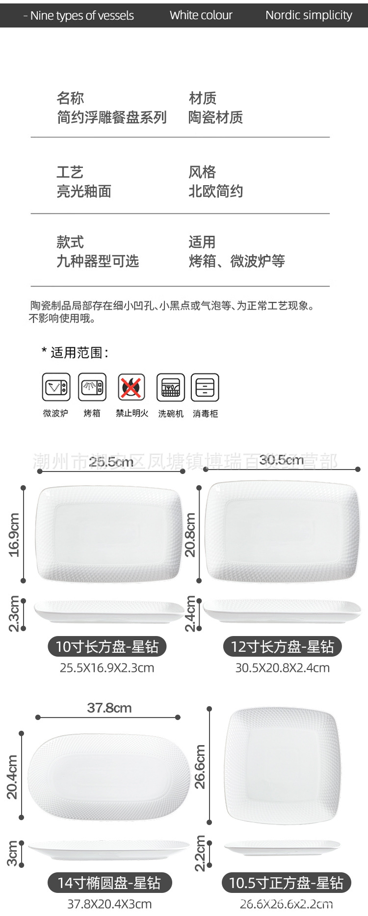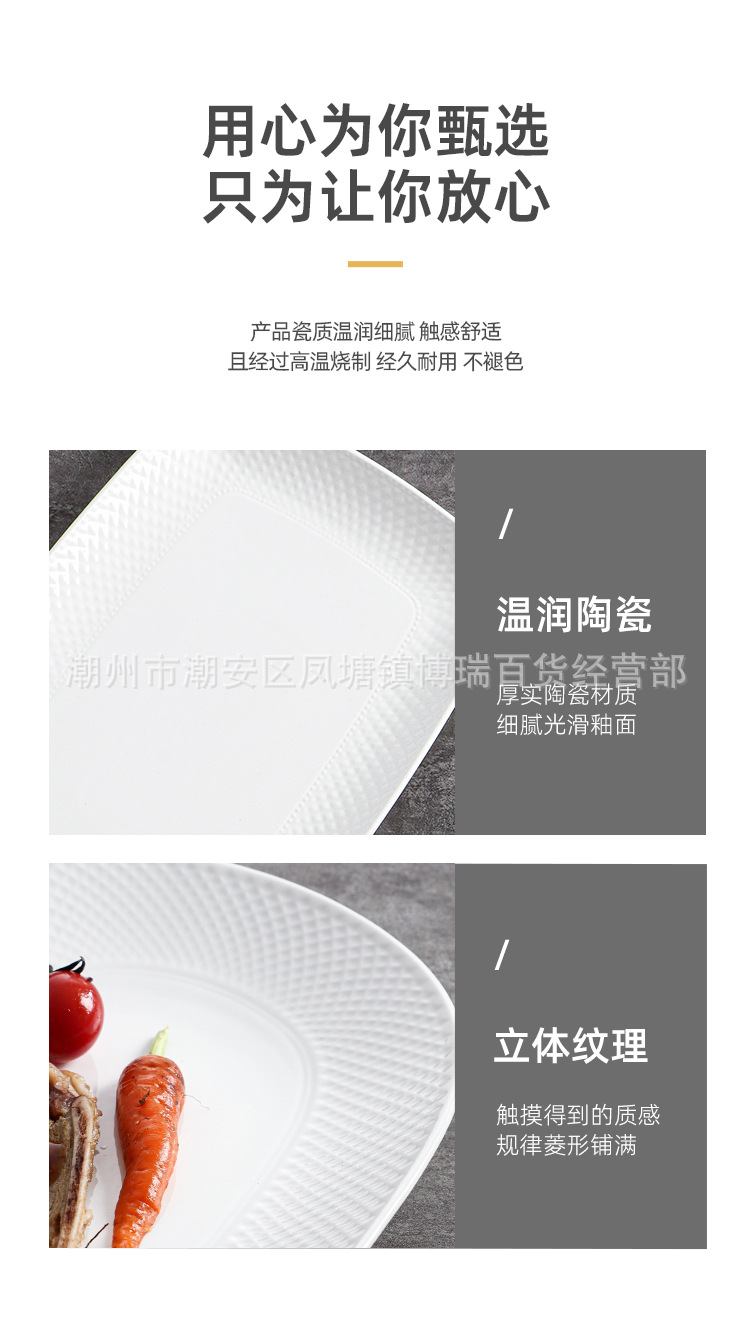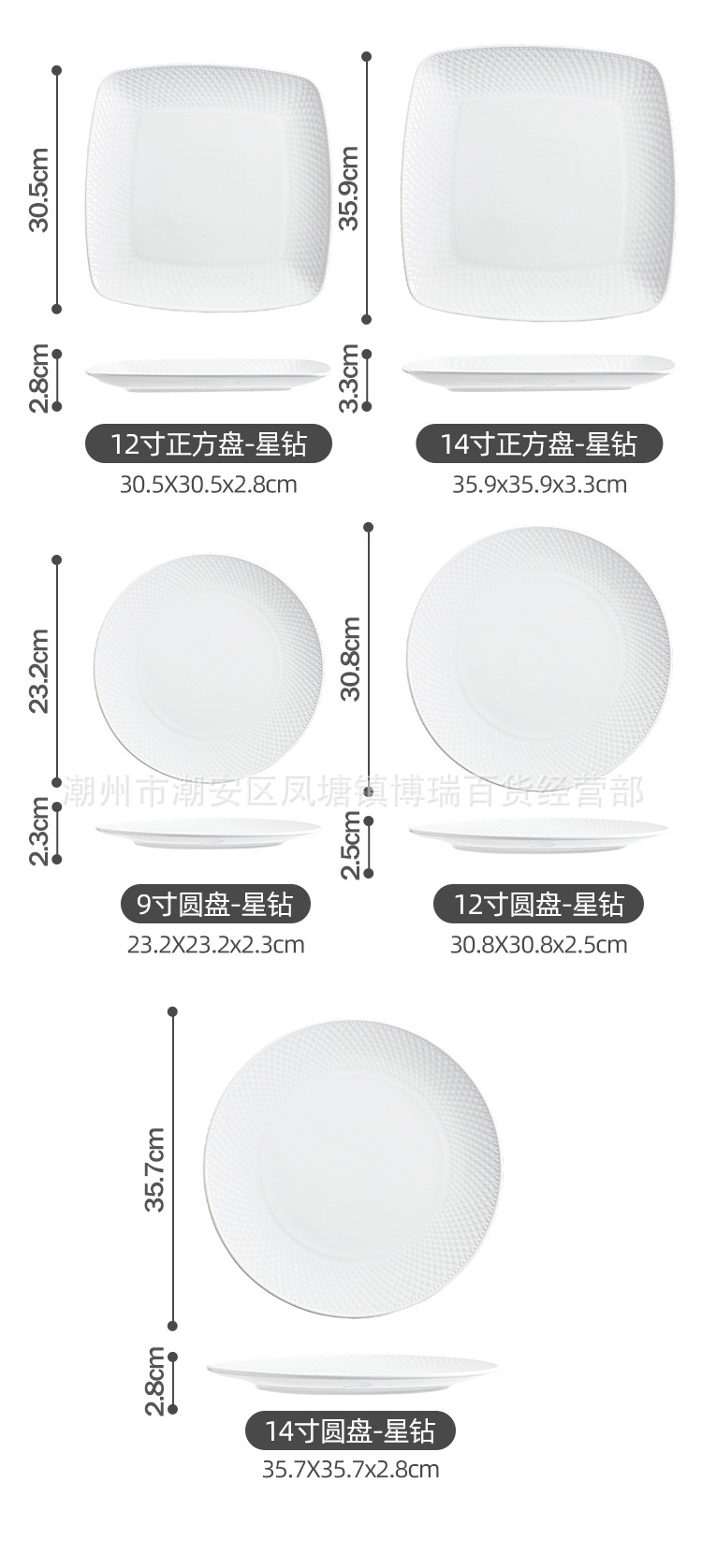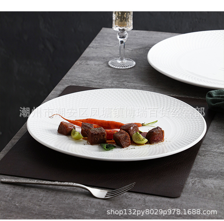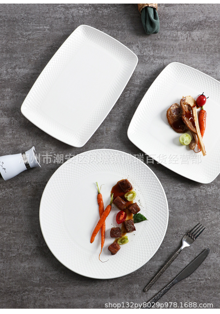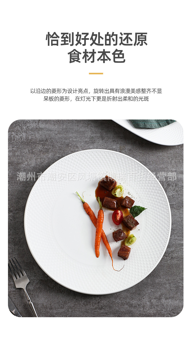 ヨーロッパの高級家庭用セラミック洋食プレート、ダイヤモンドエンボス加工のパスタボウル、ラーメンボウル、フルーツボウル