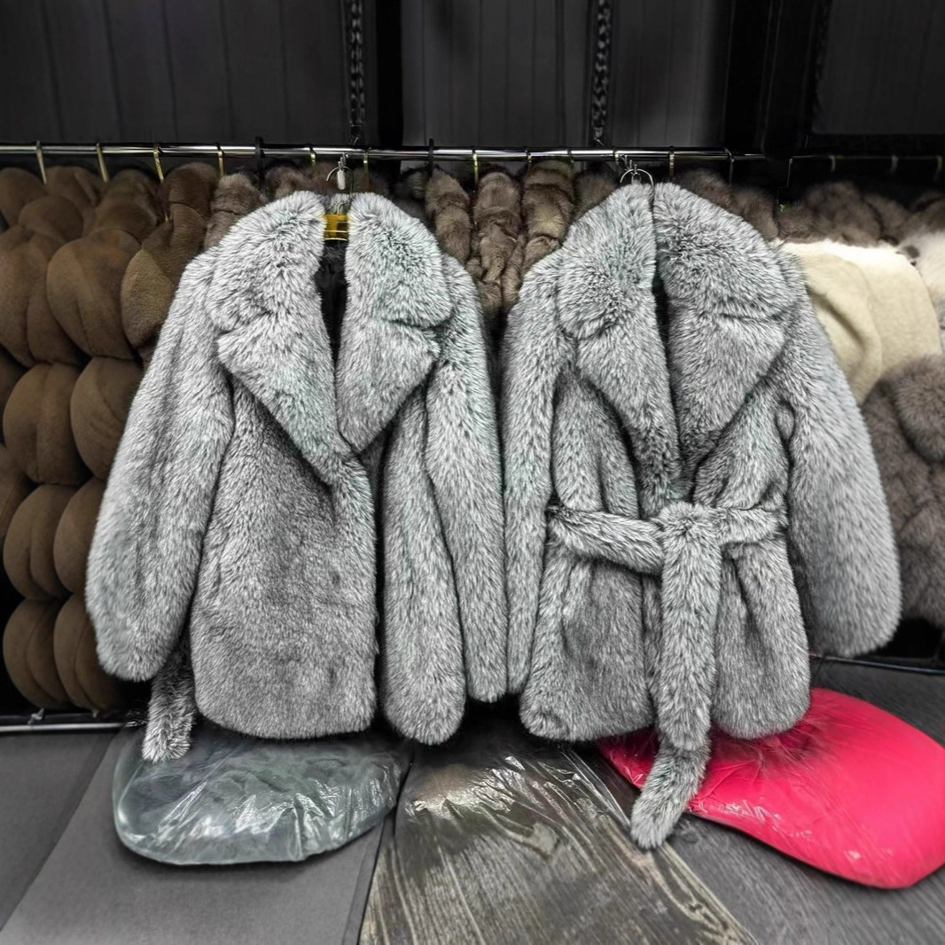 新型女装冬はキツネの毛の若いタイプの狼の毛色の毛皮のコートをまねます。