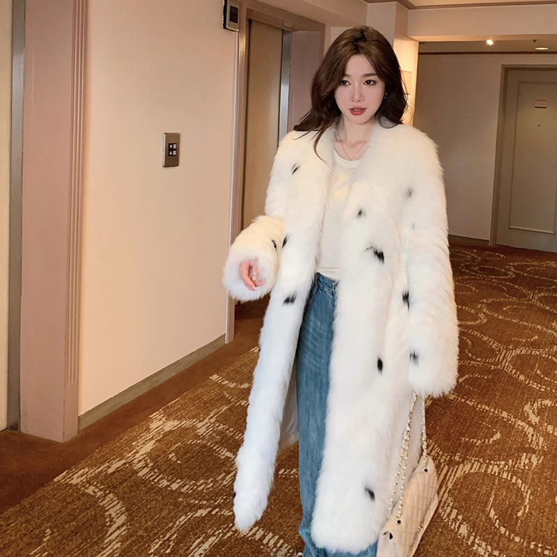 女装皮草外套仿狐狸毛豹纹斑点大衣V领中长款毛毛风衣冬季新款
