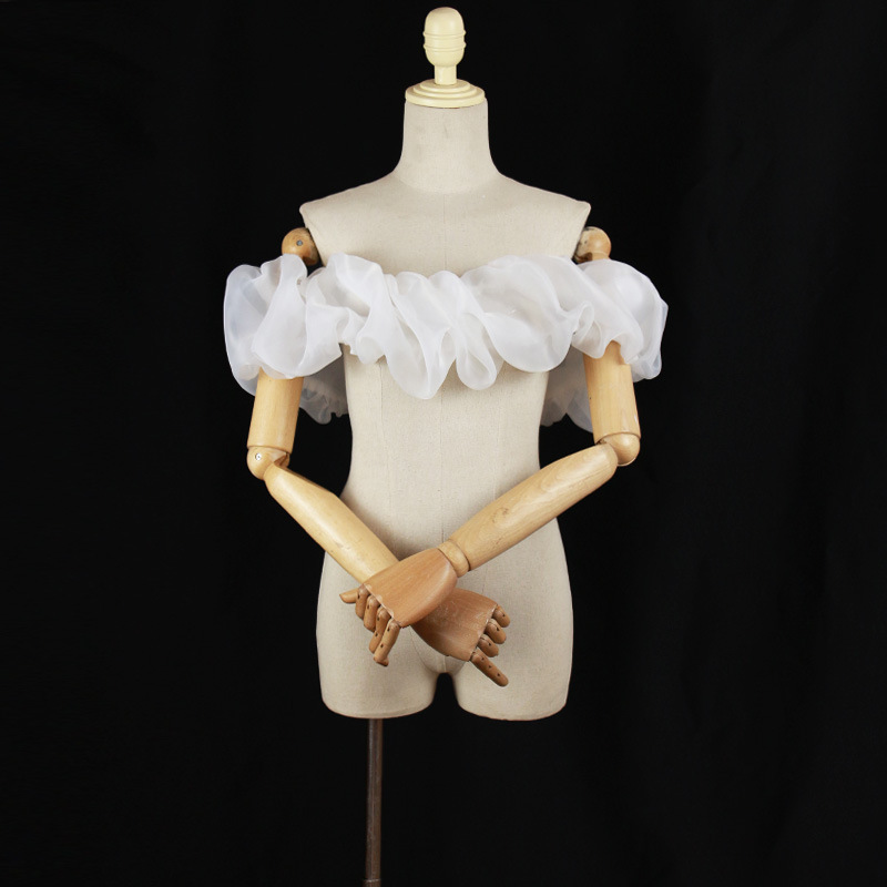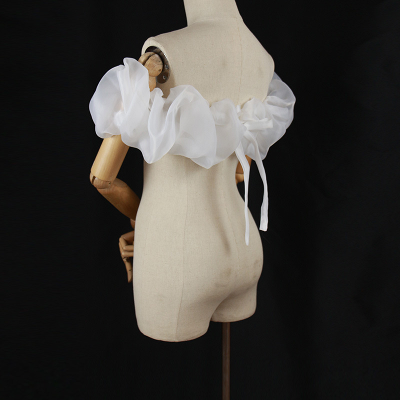 花嫁のウェディングドレスクラウドワンショルダーショールカバーアームバブルスリーブホワイトメッシュステージキャットウォークアクセサリー