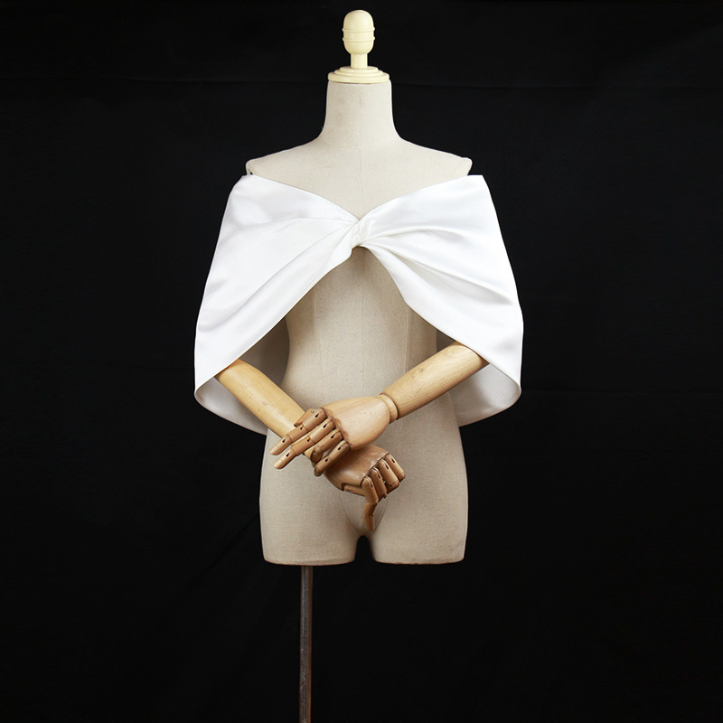 白色缎面肩饰一字肩披肩晚会礼服饰品婚纱拍照配饰演出服百搭简约