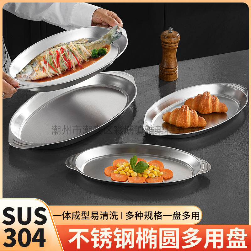 クロスボーダーのステンレスの魚の皿の双耳の家庭用楕円形の蒸し魚の皿はスズキの皿の韓国式の軽食の皿を蒸します。