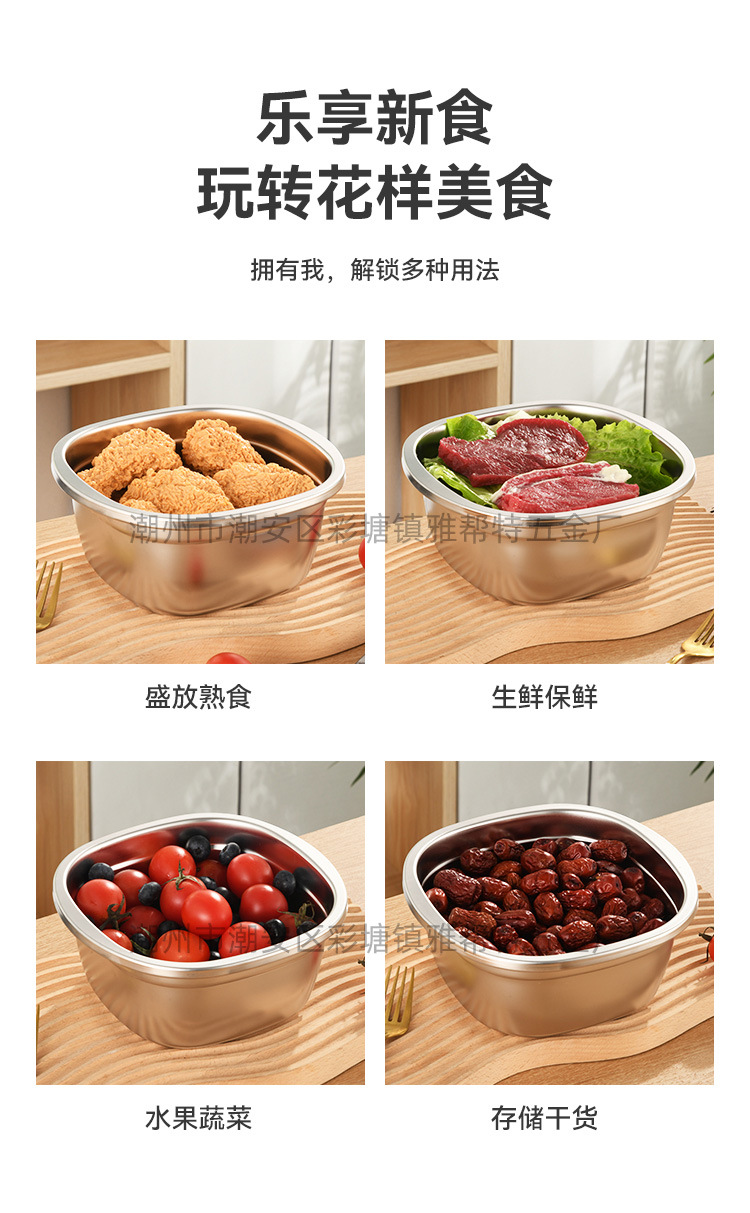 クロスボーダーのステンレスは厚い水たまりの四角形の野菜のたらいの多機能の四角形のたらいを厚くして野菜のたらいを用意します。