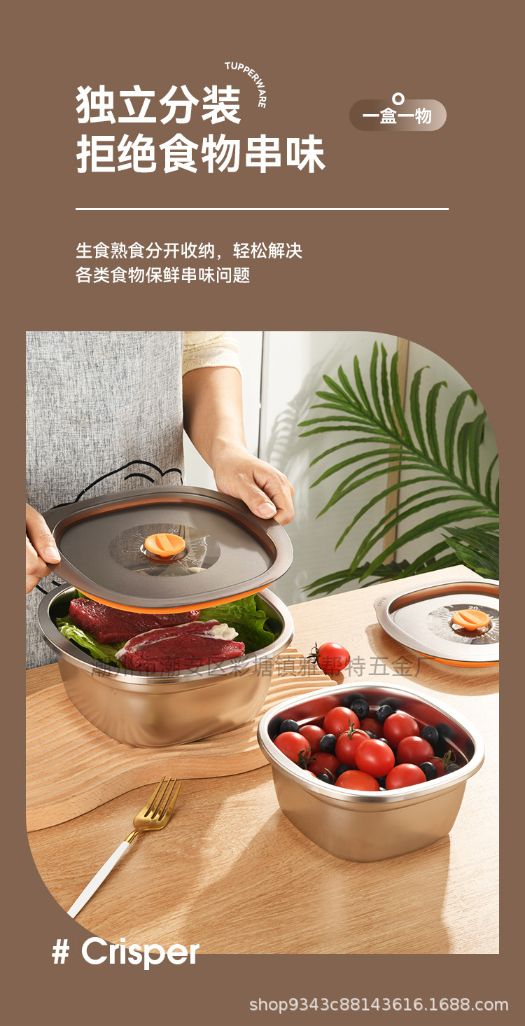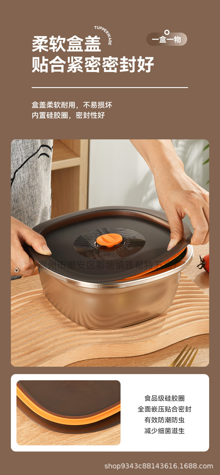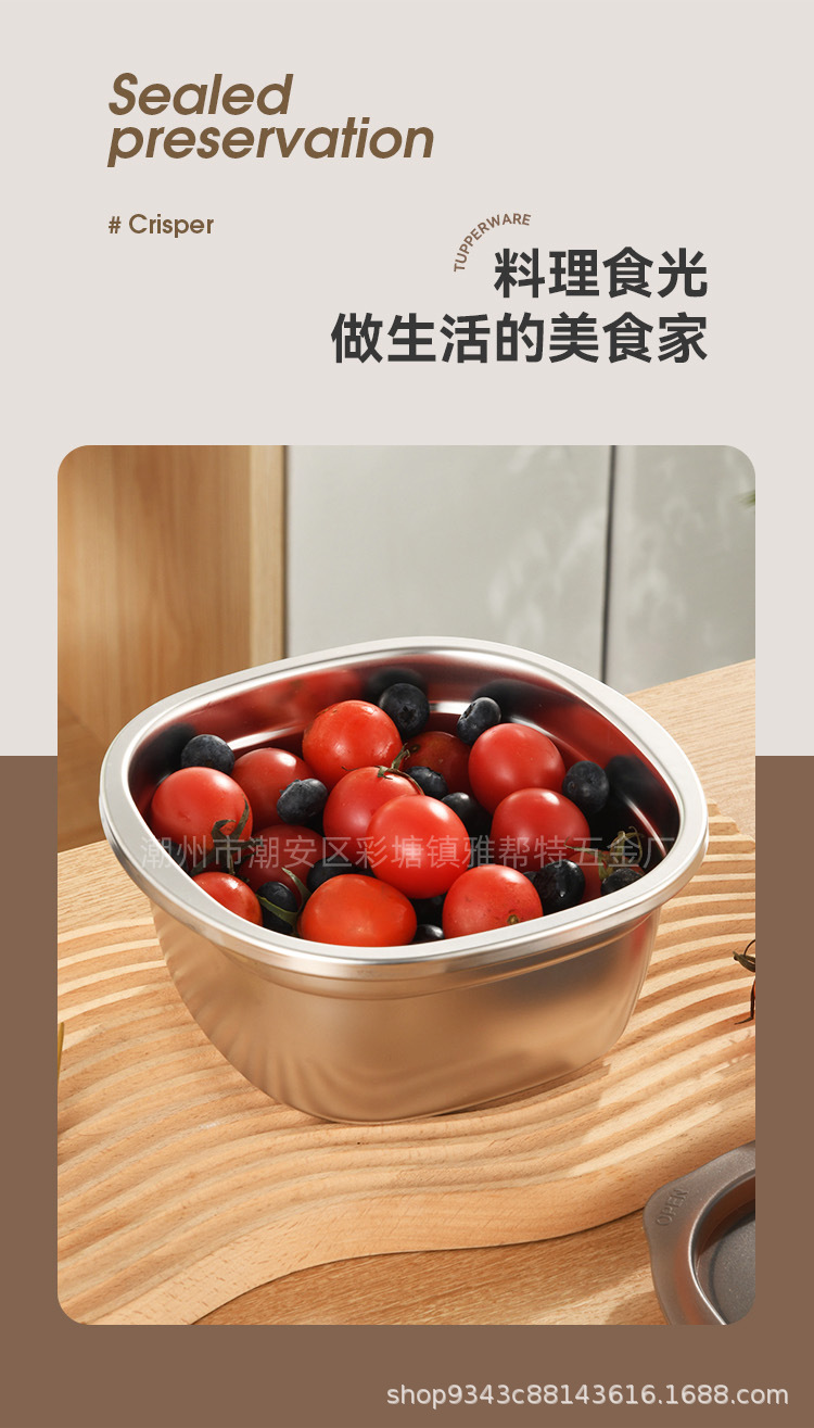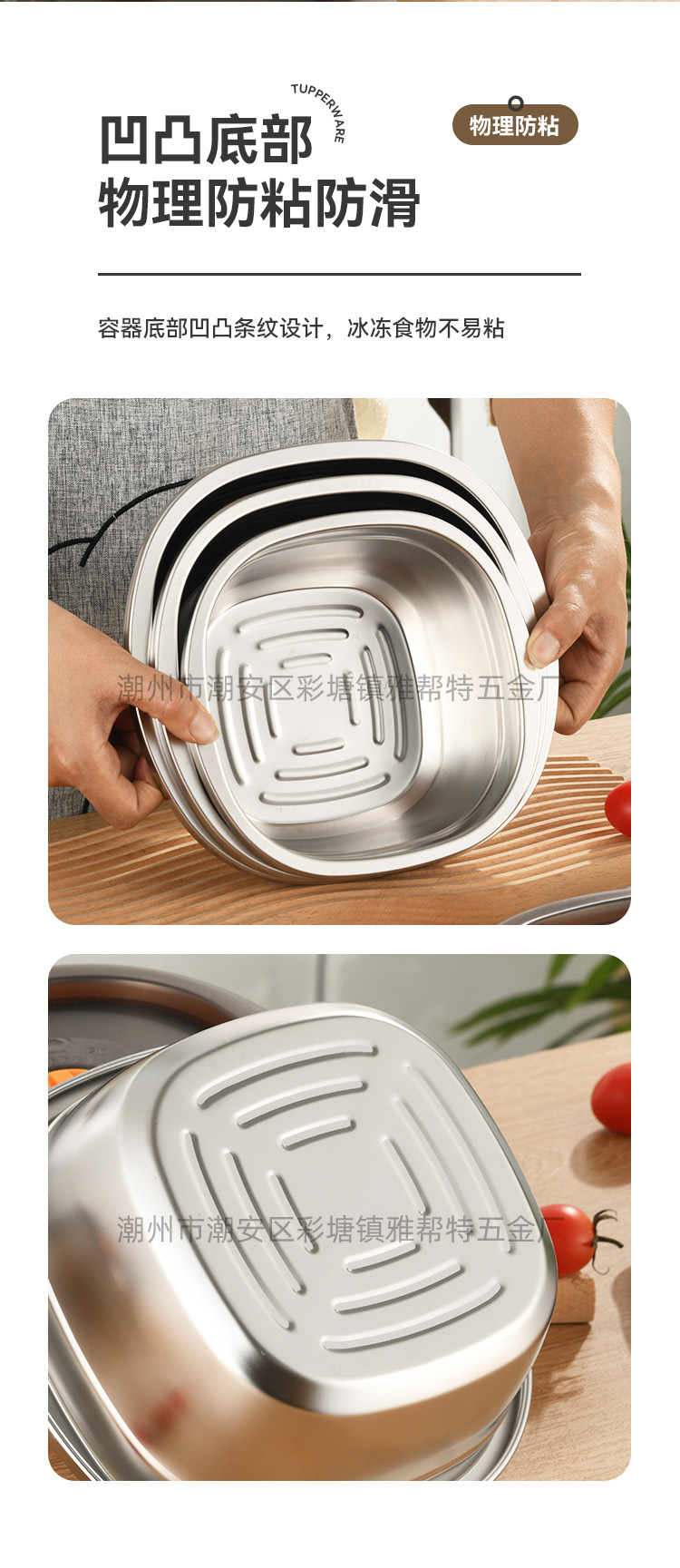 ディザトーン爆発金304ステンレス鮮度保持箱キッチン家庭用蓋付き食品級冷蔵庫収納箱冷凍肉収納