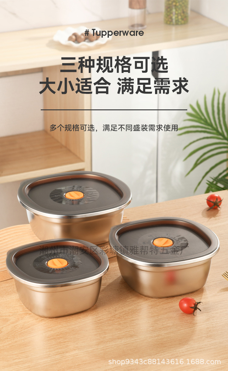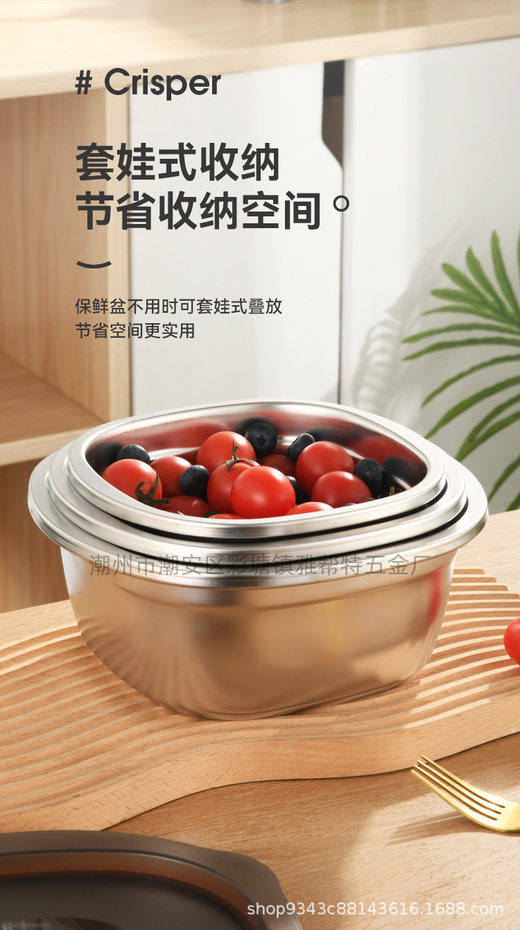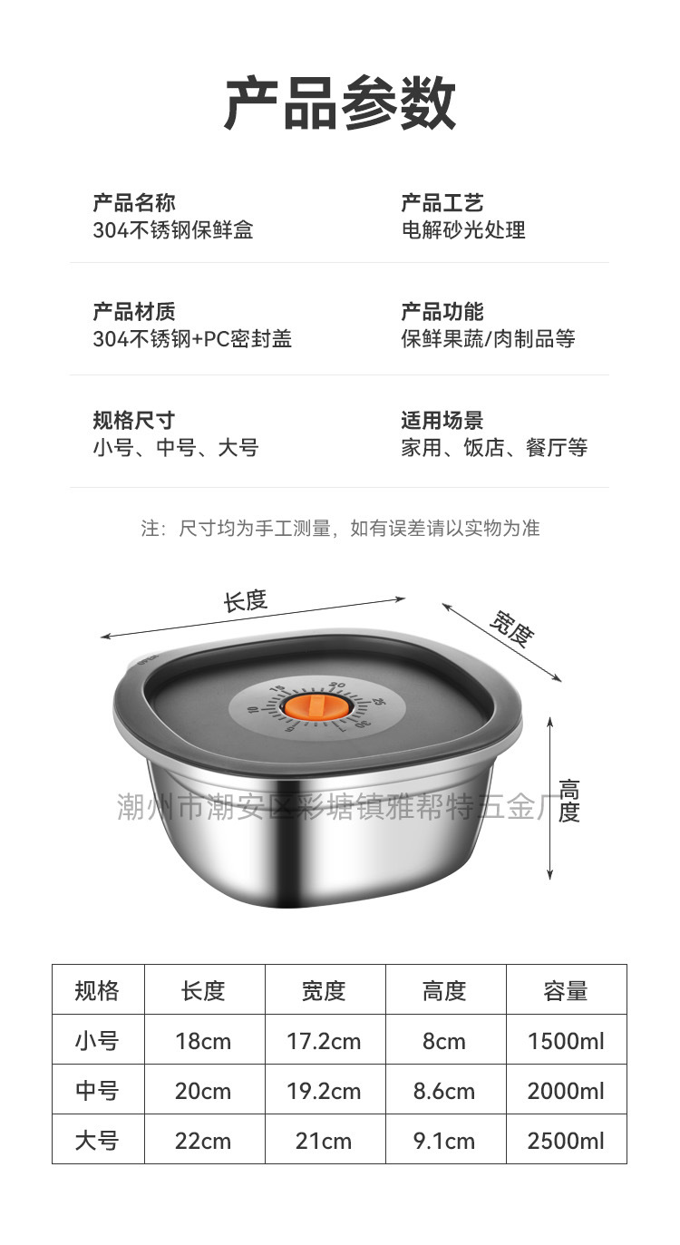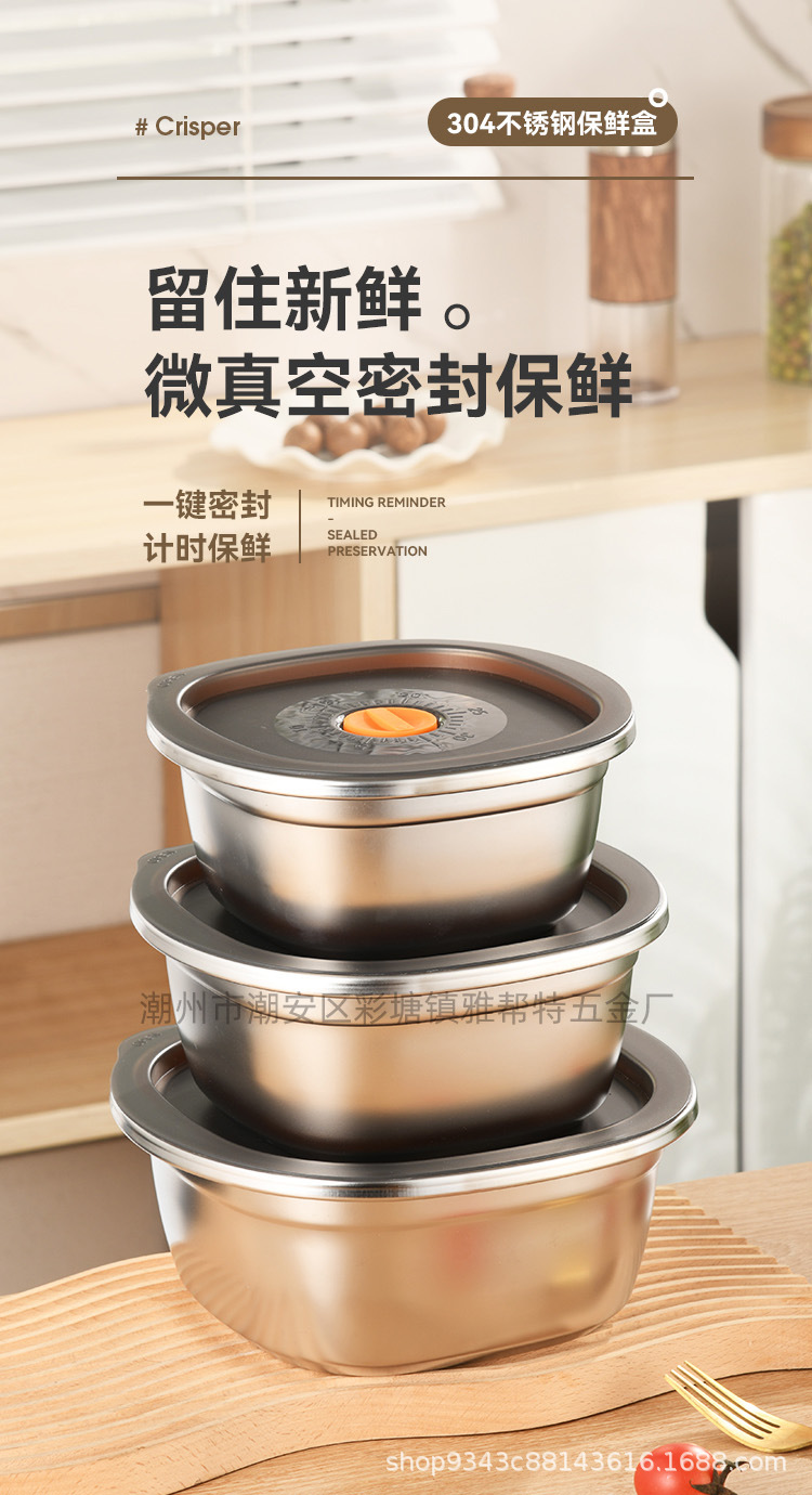 ディザトーン爆発金304ステンレス鮮度保持箱キッチン家庭用蓋付き食品級冷蔵庫収納箱冷凍肉収納