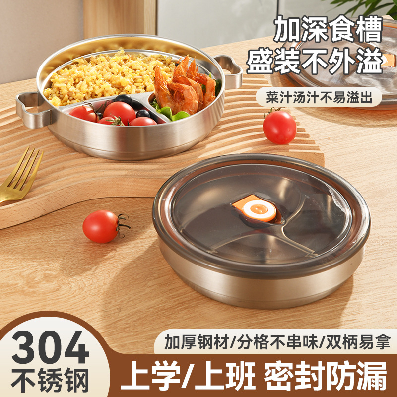 304 ステンレス鋼二層火傷防止ディナープレート学生断熱弁当箱 3 コンパートメント弁当箱ラウンド米サービングプレート