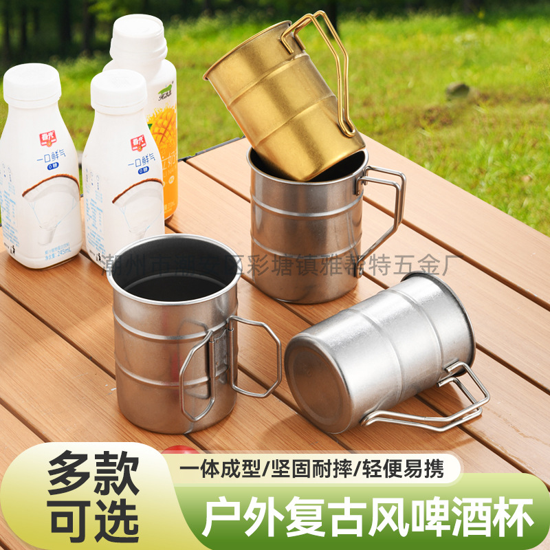 クロスボーダー 304 ステンレス鋼マグ屋外キャンプウォーターカップポータブル折りたたみハンドルコーヒーカップビールカップ