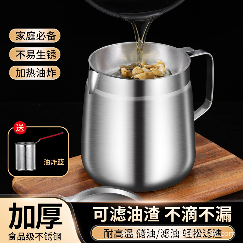 跨境滤油壶不锈钢加厚家用带滤网大容量储油罐过滤油渣神器装油瓶