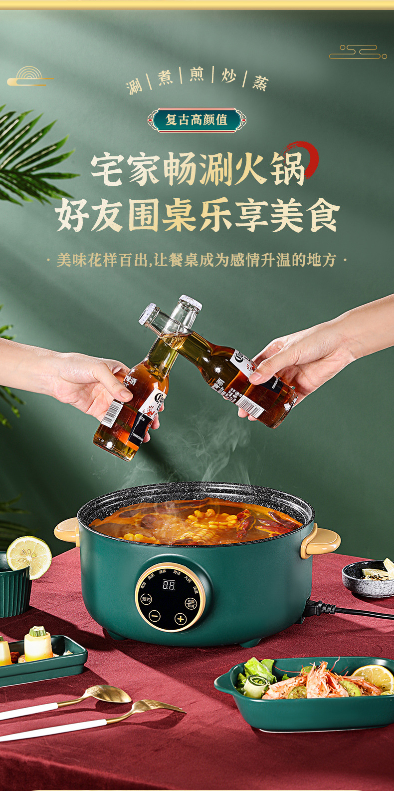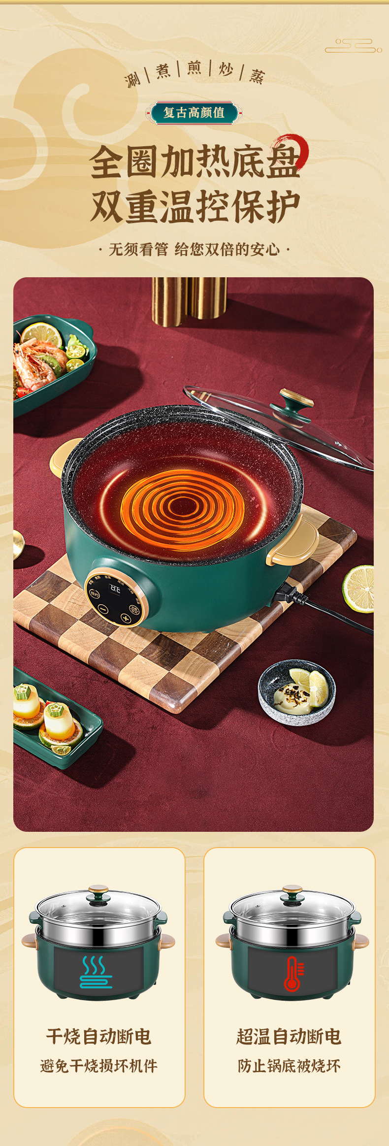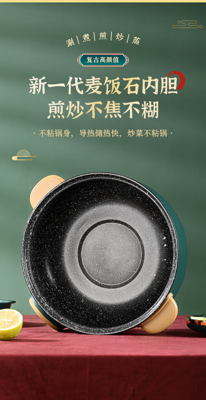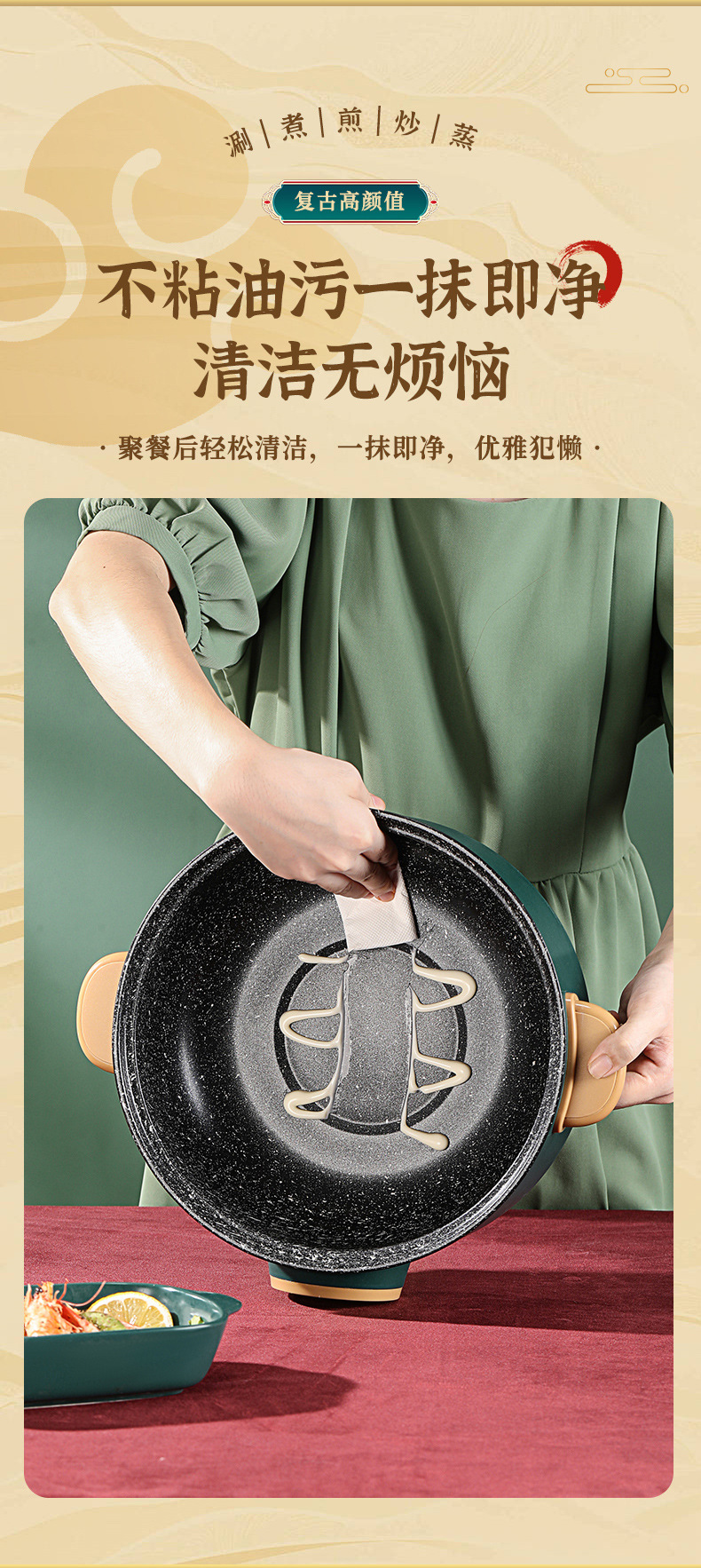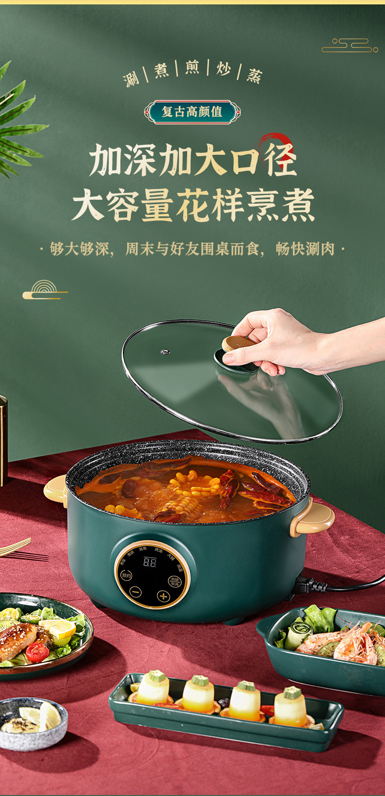 电炒锅家用大容量炒菜爆炒多功能不粘锅电炒锅一体炒菜大功率煮煎