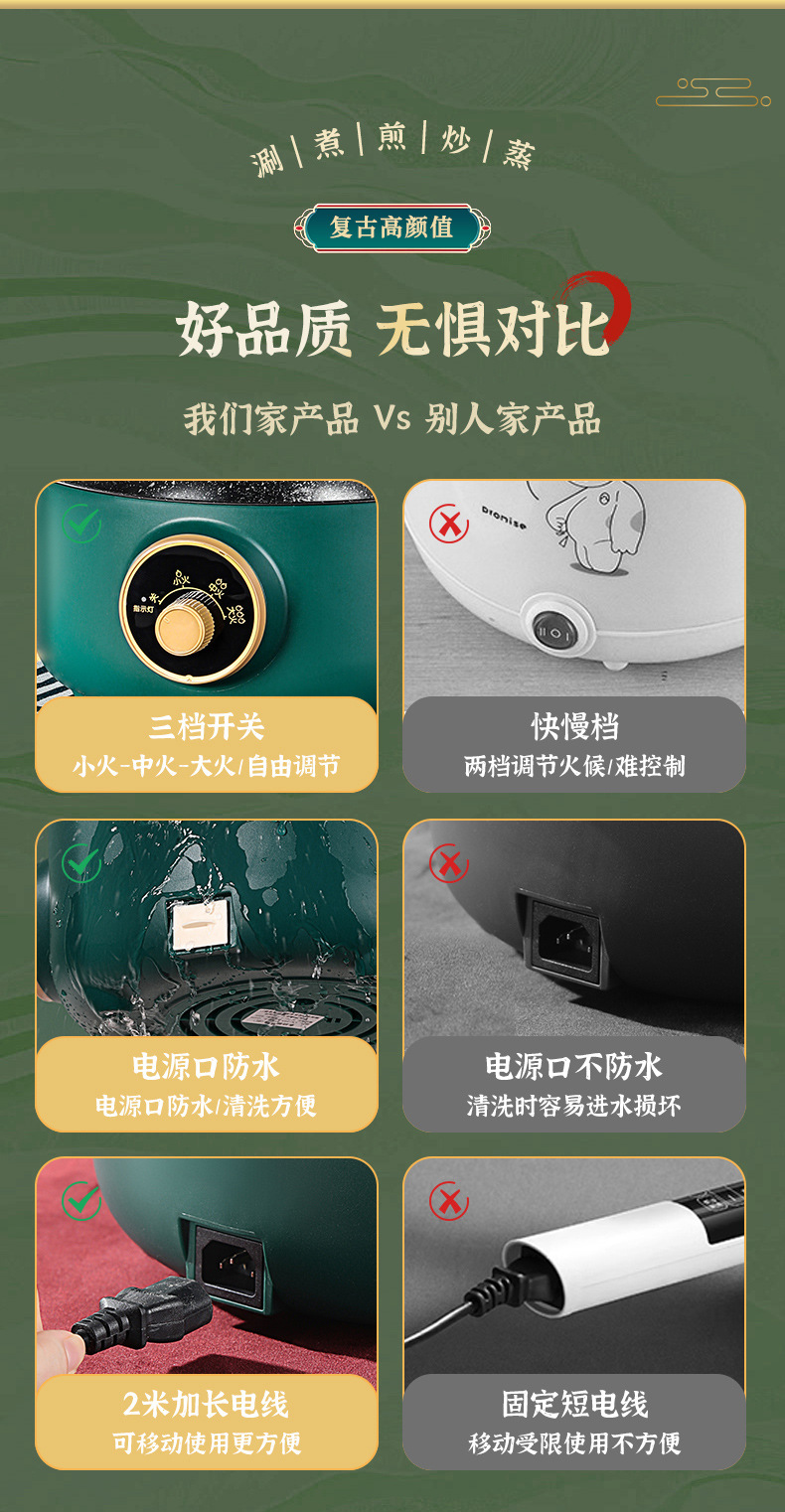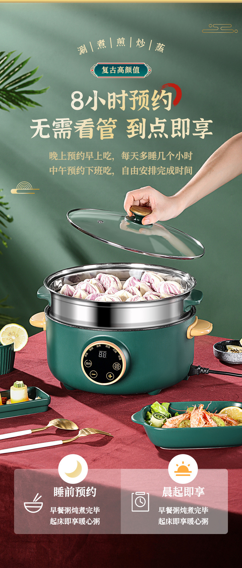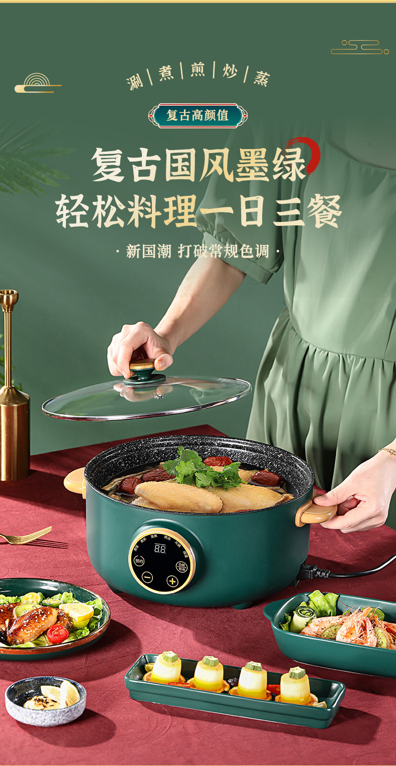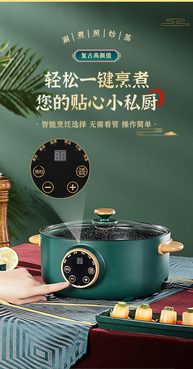 電気調理器、寮生用鍋、家庭用小型電気調理器、多機能蒸し、揚げ、炒め、一体型麺調理鍋、電気鍋
