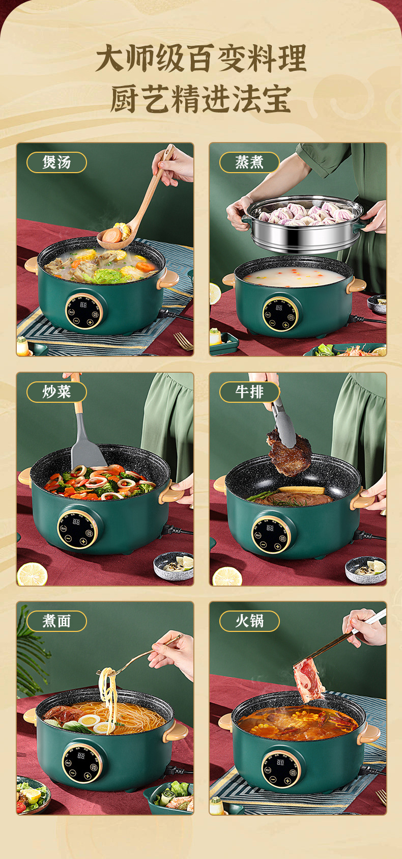新款电炒锅多功能料理锅家用大容量电煮锅蒸煮一体宿舍煎炒电火锅