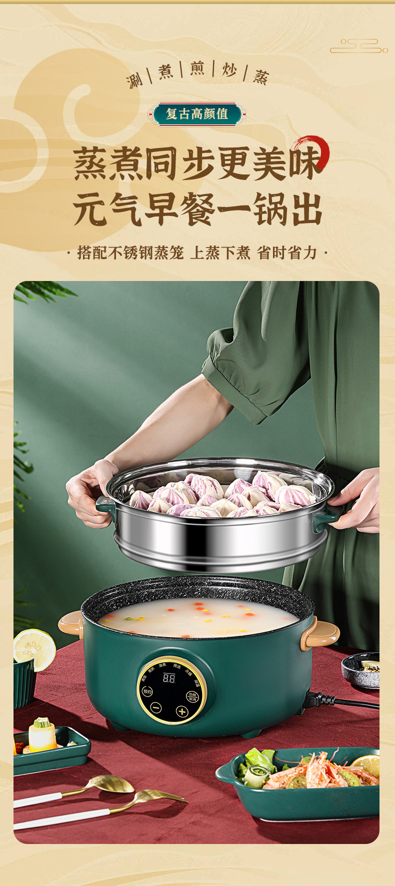 (备用)电炒锅家用炒菜锅一体式不粘锅多功能宿舍蒸煮电热料理锅