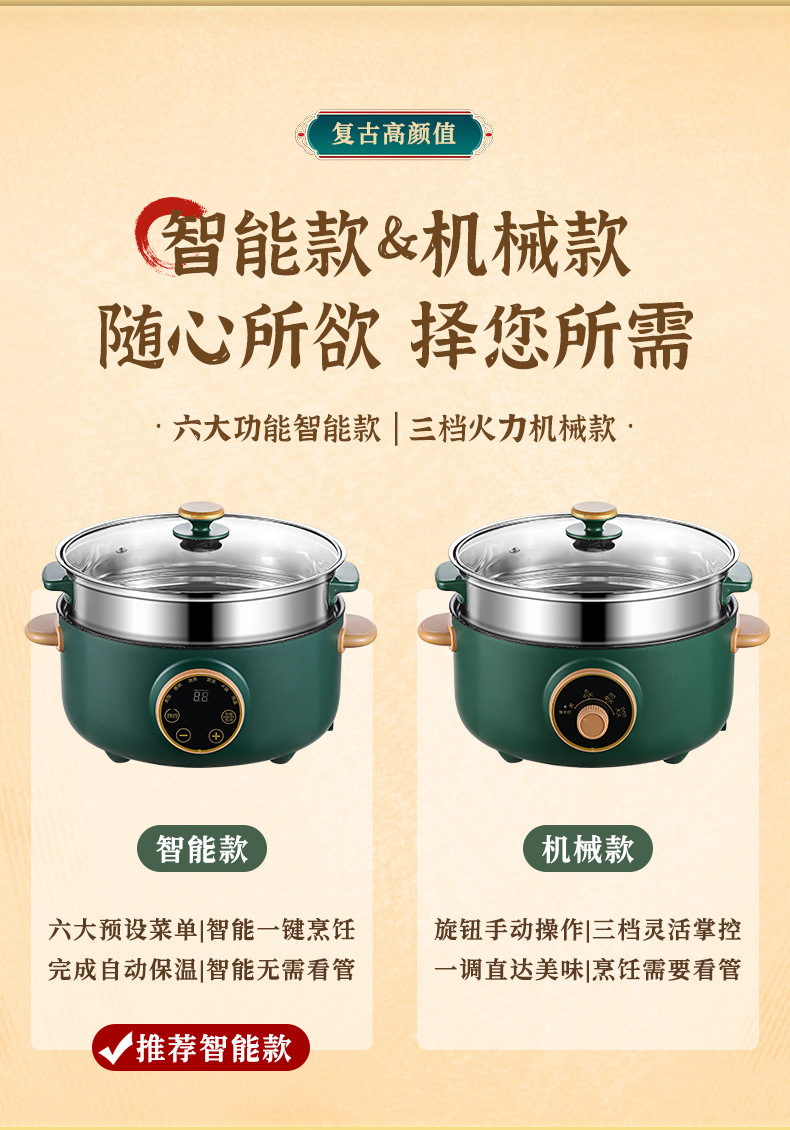 多功能电煮锅宿舍锅电蒸煮一体锅电煮锅火锅学生小电锅智能电饭煲