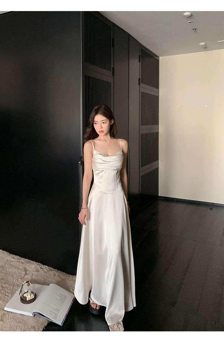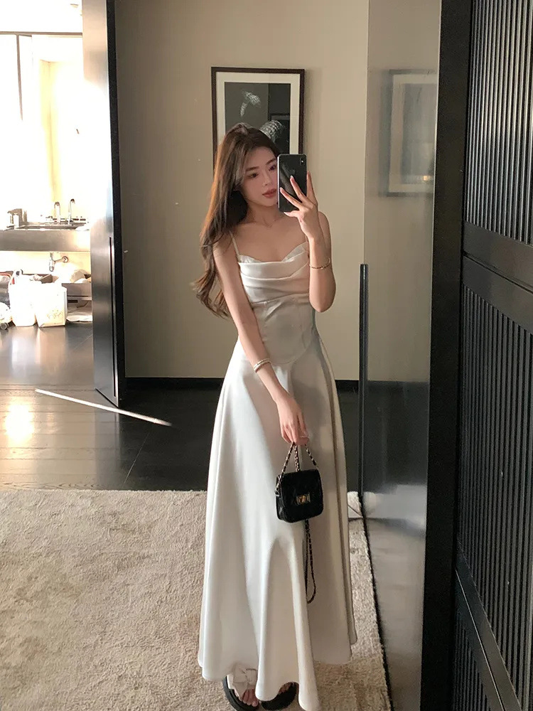 2025年夏季新款赫本裙收腰温柔缎面光泽感收腰气质吊带连衣裙礼服