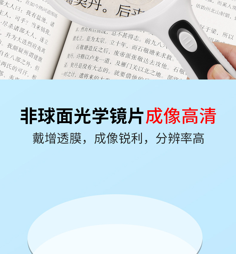 20倍非球面放大镜带LED灯老人看书儿童学生30高清高倍100批发
