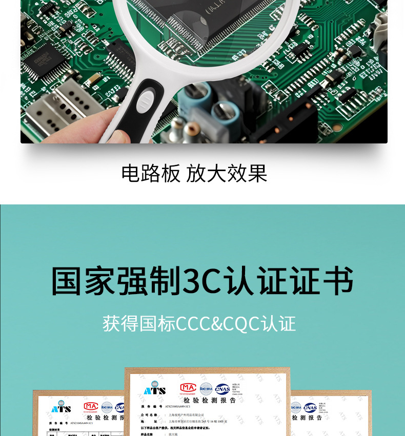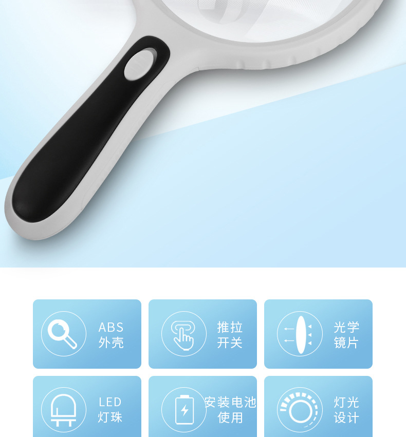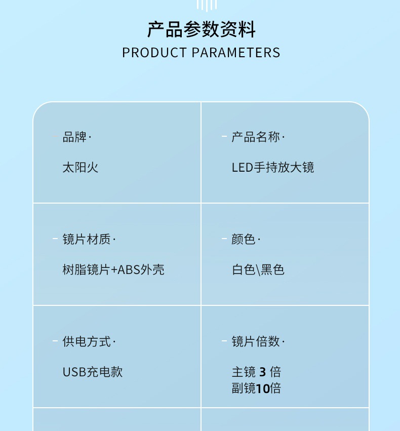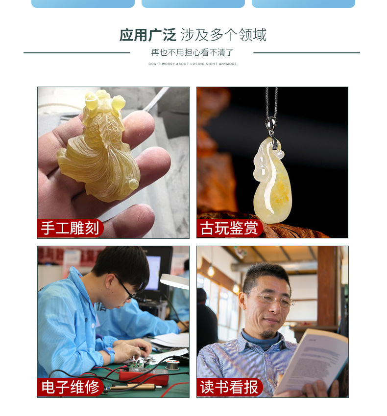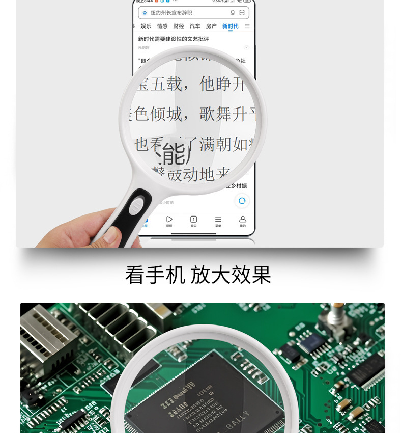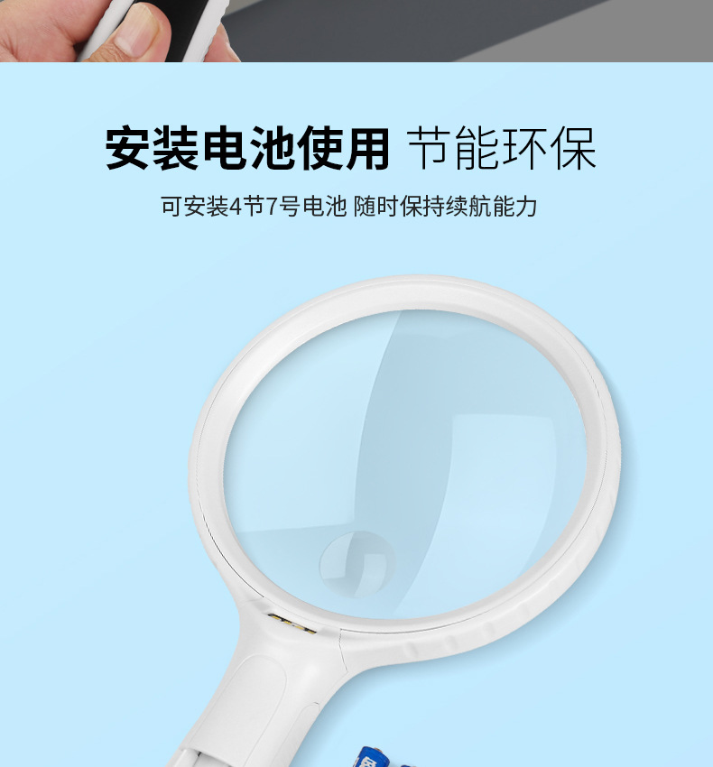 太阳火充电手持式放大镜家电维修电子元件阅读看书3颗LED灯6H-2C