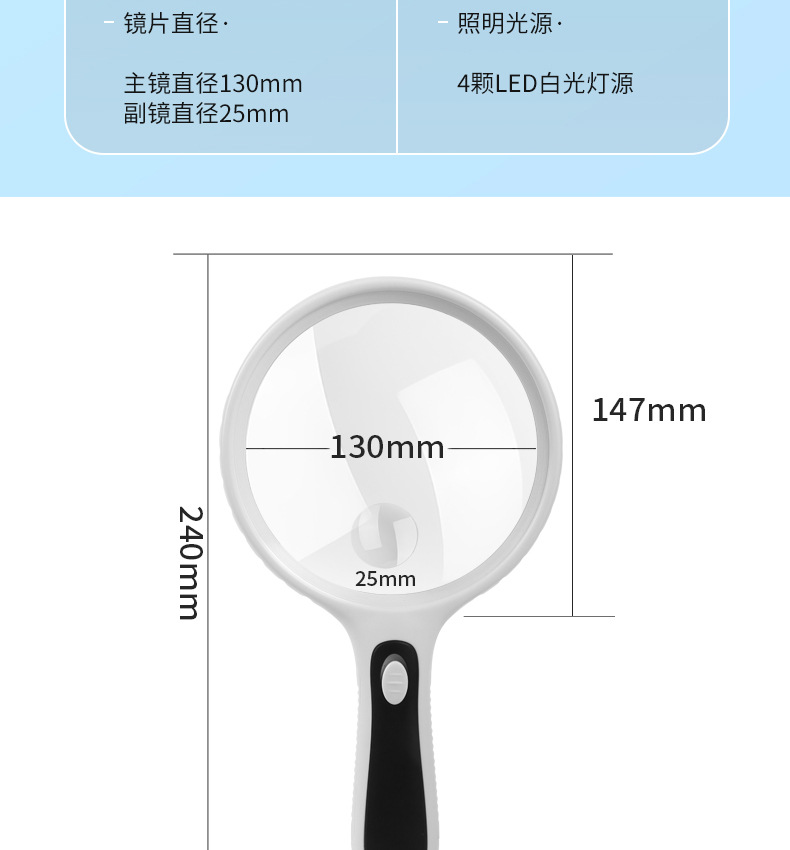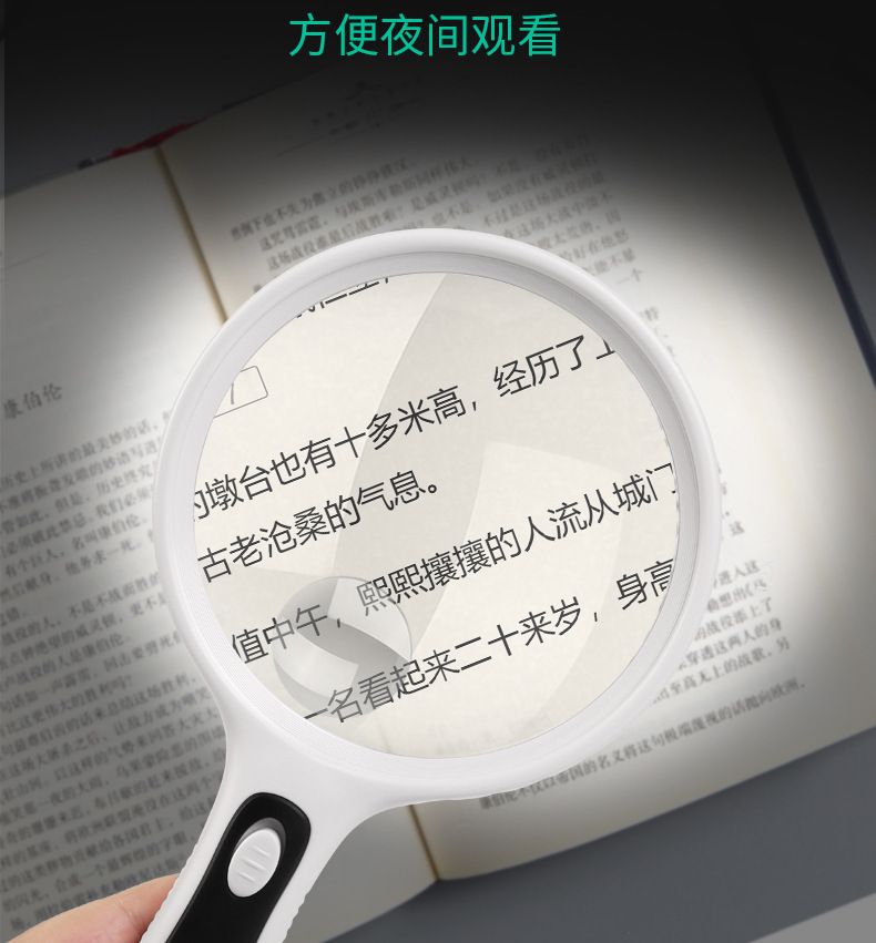 45倍ドイツ工芸145mm大鏡面高倍手持ちルーペ付きledライト付き老人読書学生