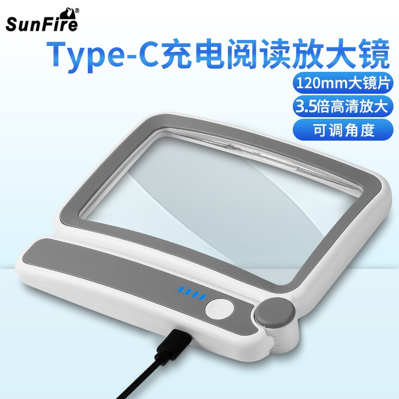 サンファイア充電式高精細 3.5 倍ハンドヘルド折りたたみ正方形拡大鏡ライト付き高齢者読書携帯電話 12075