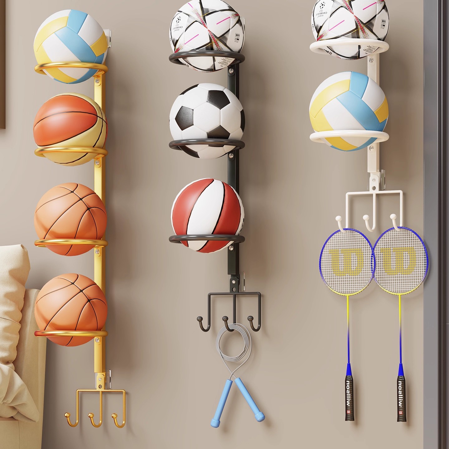 篮球收纳架家用壁挂式摆放置物架免打孔儿童羽毛足排球类收纳神器
