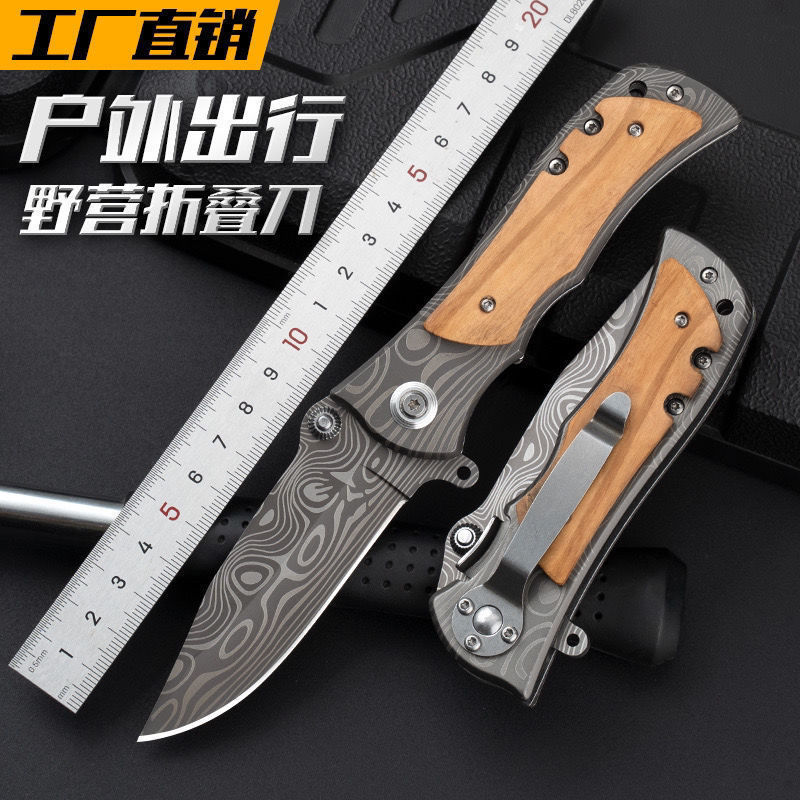 工場高硬度ステンレス鋼折りたたみナイフフィールドサバイバル戦術アウトドアナイフポータブル木製ハンドルシャープフルーツナイフ