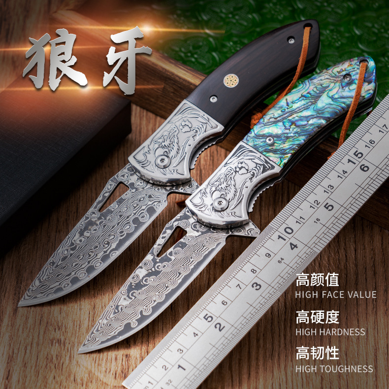 工場直販カラーシェルハンドルダマスカス鋼折りたたみナイフフルーツナイフポータブルアウトドアナイフ手作りナイフ