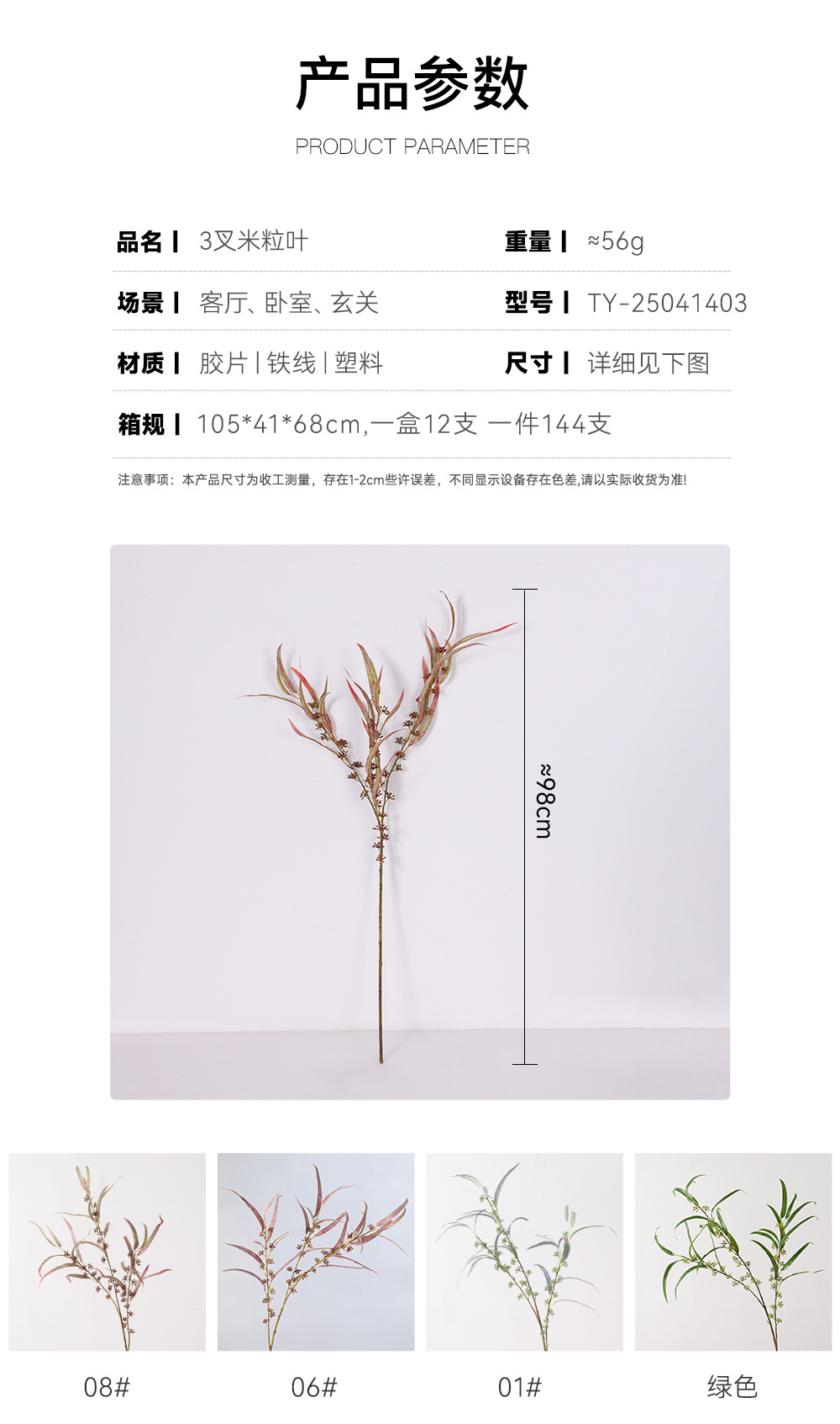 三叉米葉-01 #,三叉米葉-06#,三叉米葉-08#,米粒の葉のフォーク 3 本 - 緑色