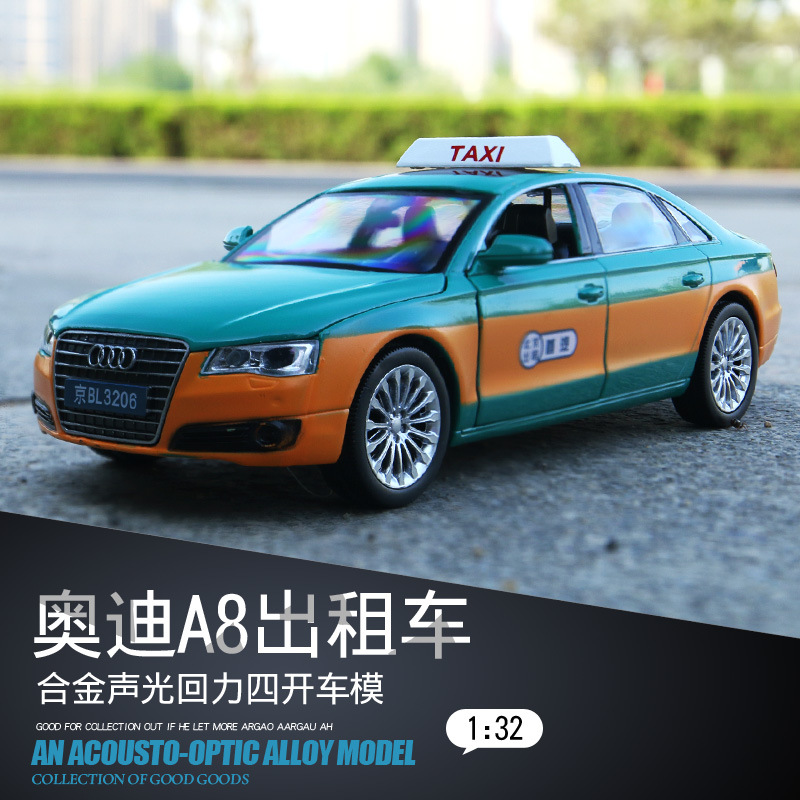 1:32 リンホイA8タクシー シミュレーションカーモデル プルバック式 四ドア MS103205C 箱入り