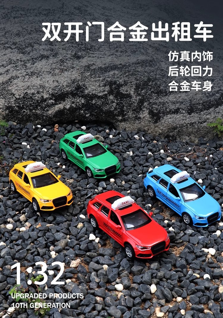 1:32合金模型出租车玩具灯光音效车模六门可开尾翼小汽车模型车