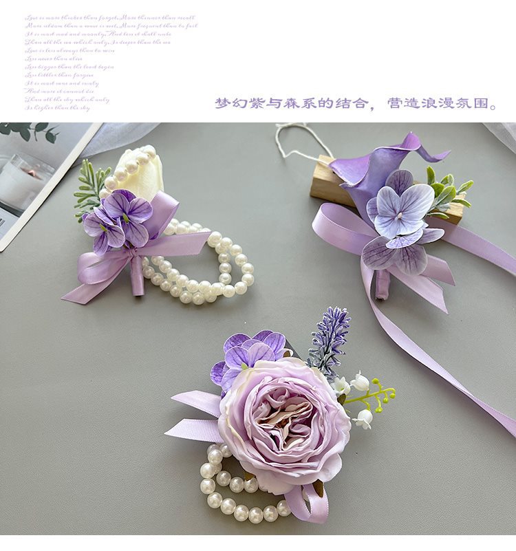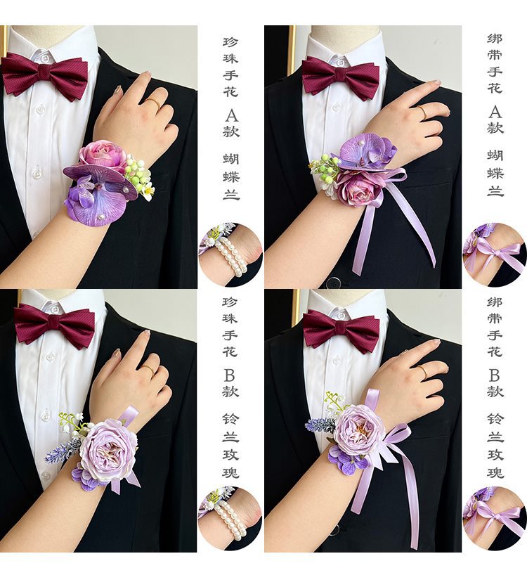 075結婚手首花新郎新婦襟花pu馬蹄蓮手作り舞踏会パーティーシミュレーション花束