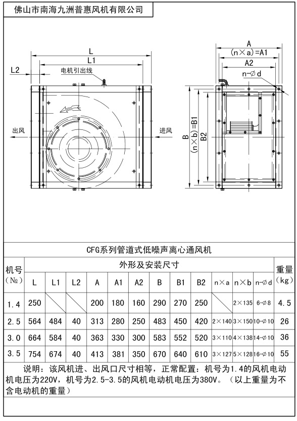 九州 CFG型パイプ遠心換気扇 1.4/2.5/3.0/3.5