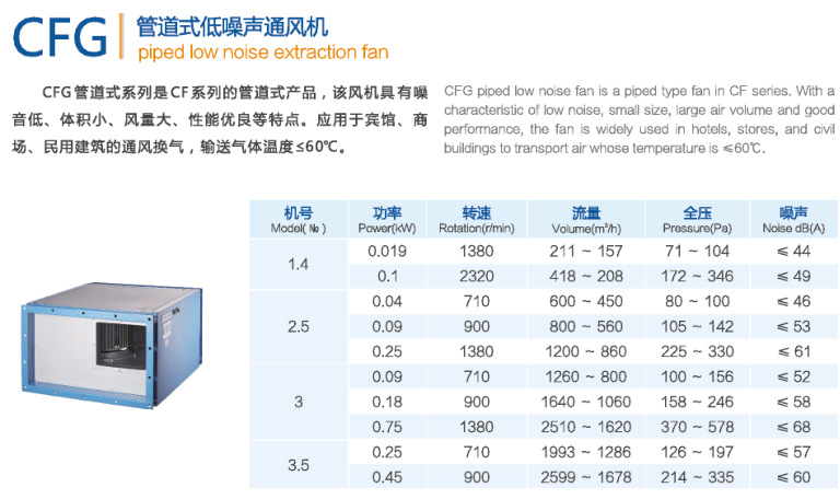 製品仕様 CFG-1.4-0.019KW,CFG-1.4-0.1KW,CFG-2.5-0.04KW,CFG-2.5-0.09KW,CFG-2.5-0.25KW,CFG-3.0-0.09KW,CFG-3.0-0.75KW,CFG-3.5A-0.25KW,CFG-3.5-0.45KW,CFG-3.0-0.18KW