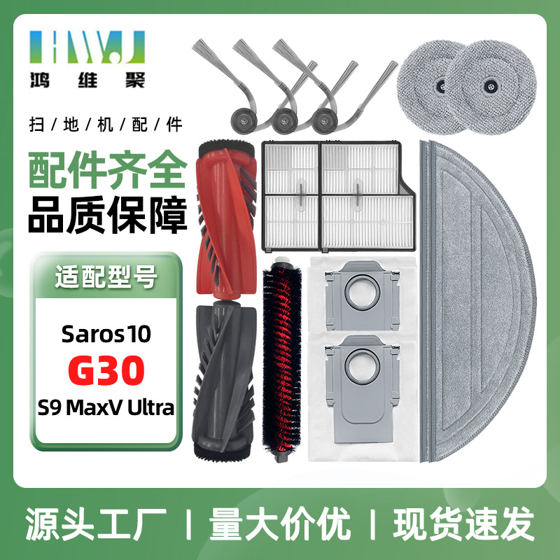 适用石头G30扫地机器人配件Saros 10主边刷滤芯拖抹布尘袋清洁液
