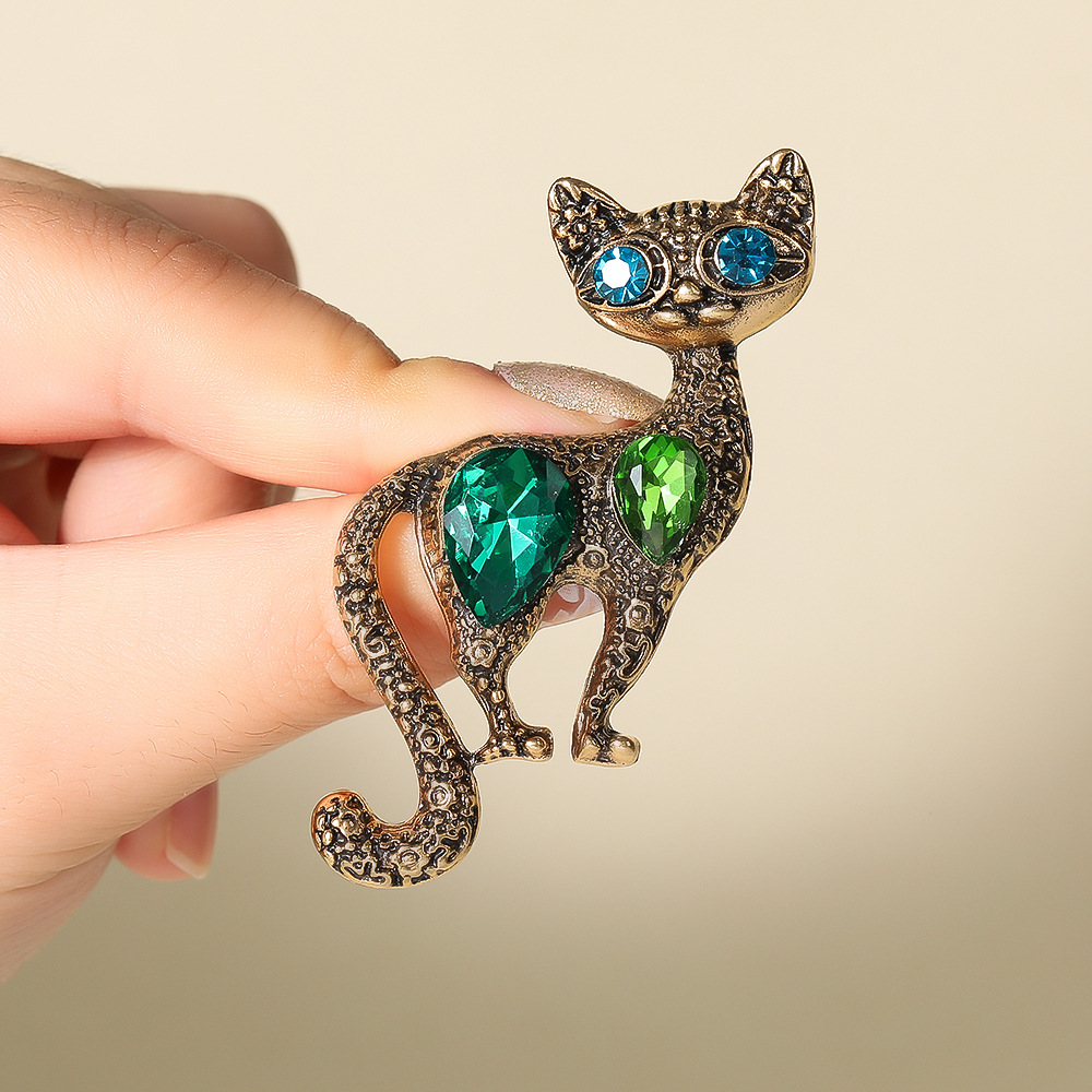 国境を越えた欧米のレトロな緑の子猫は水晶のブローチの個性の動物のピンのファッションの古い猫の胸の花をつけて飾ります。