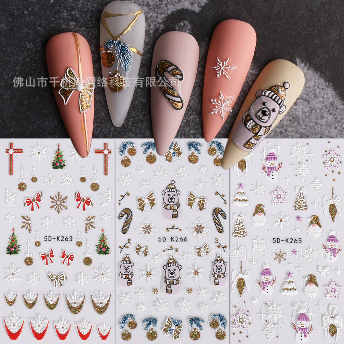 ネイルシールinsレリーフ5D立体金ネギ銀ネギクリスマス雪花ヘラジカサンタクロース爪貼り
