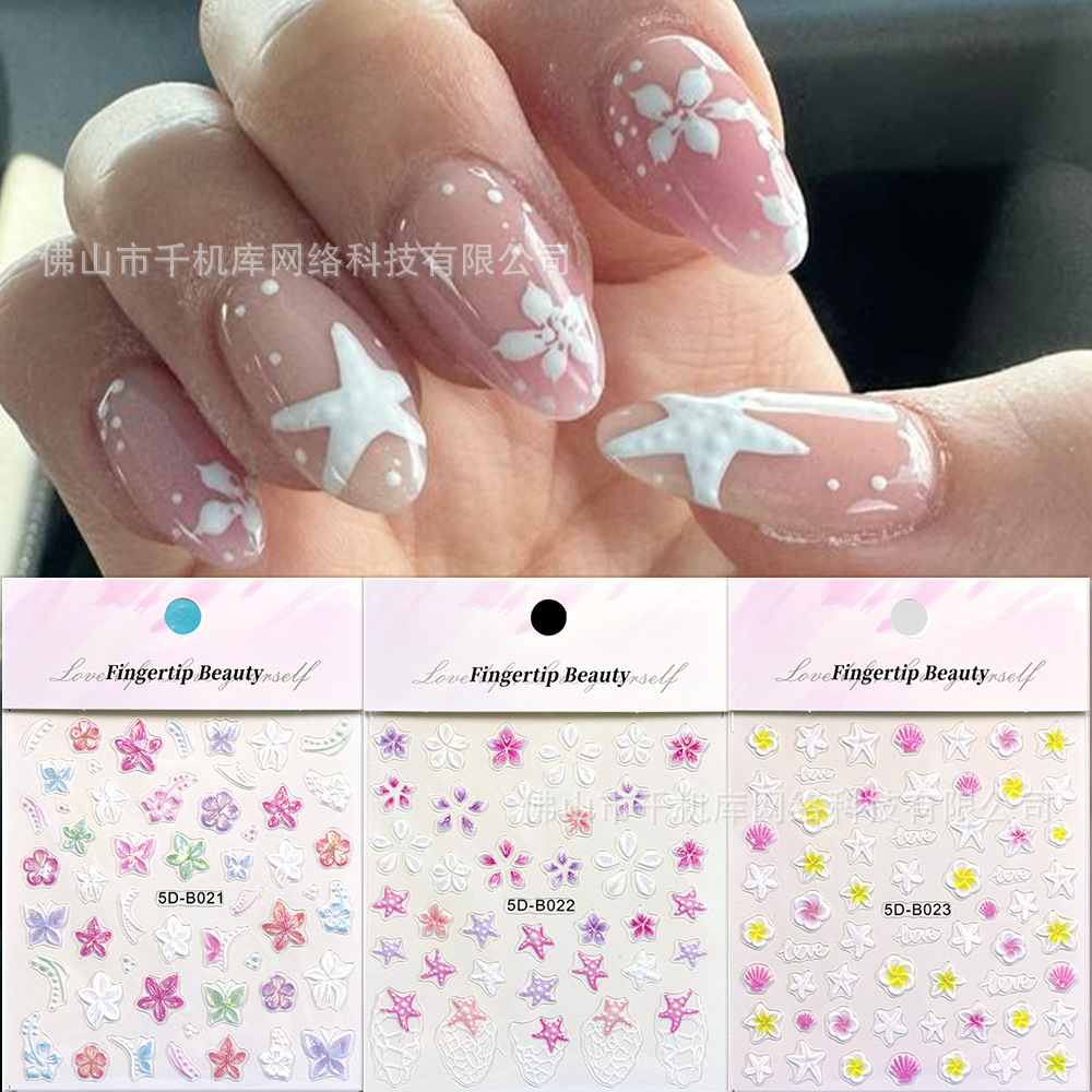 Insネットの赤い新型のレリーフのネイルシールの爆発的な立体の花の貝殻の海星の図案はゴムの爪をつけて貼ります。