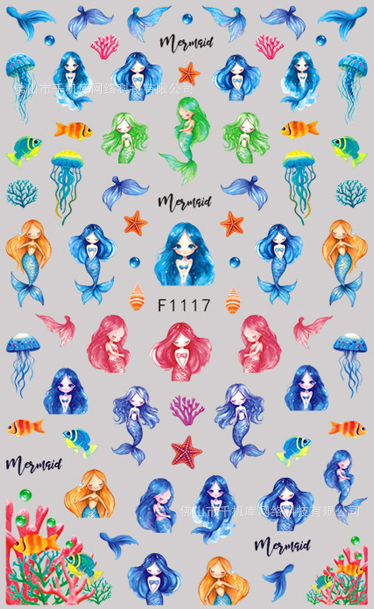 ネイルステッカー卸売夏ビーチ海洋金鱼クラゲ海藻イルカマーメイド蝶花装饰アップリケ