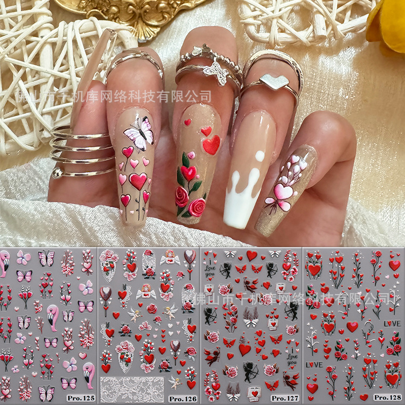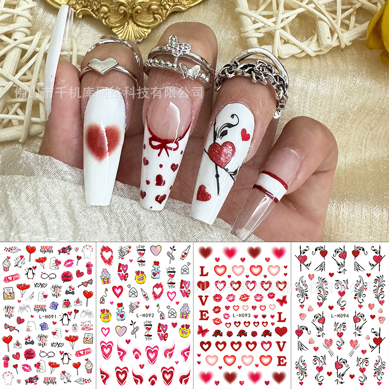 キラキラピンクのバレンタインデーのネイルステッカーの新しい愛の愛の愛の漫画の花のステッカーはバックゴムの工場を持って直接卸売りします。
