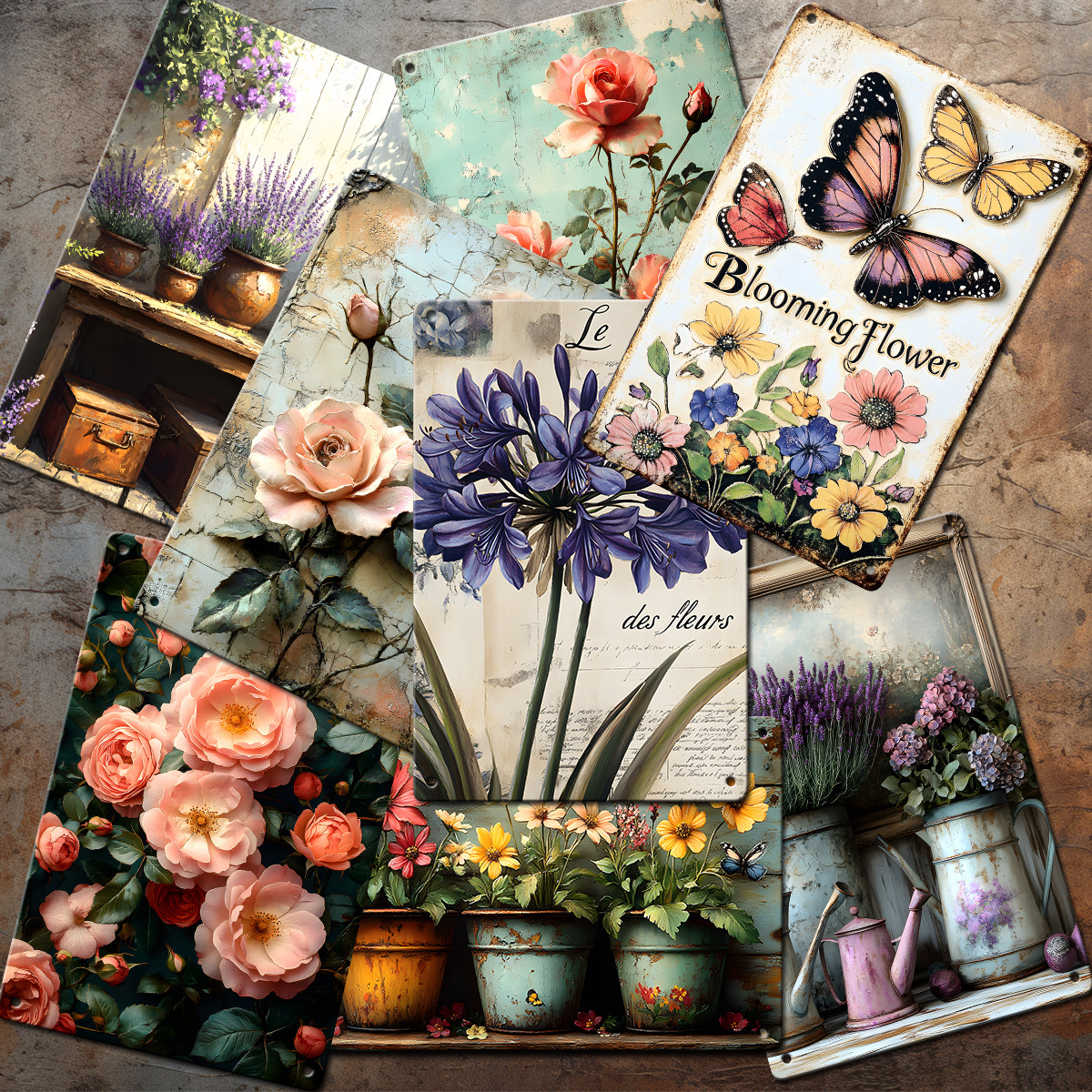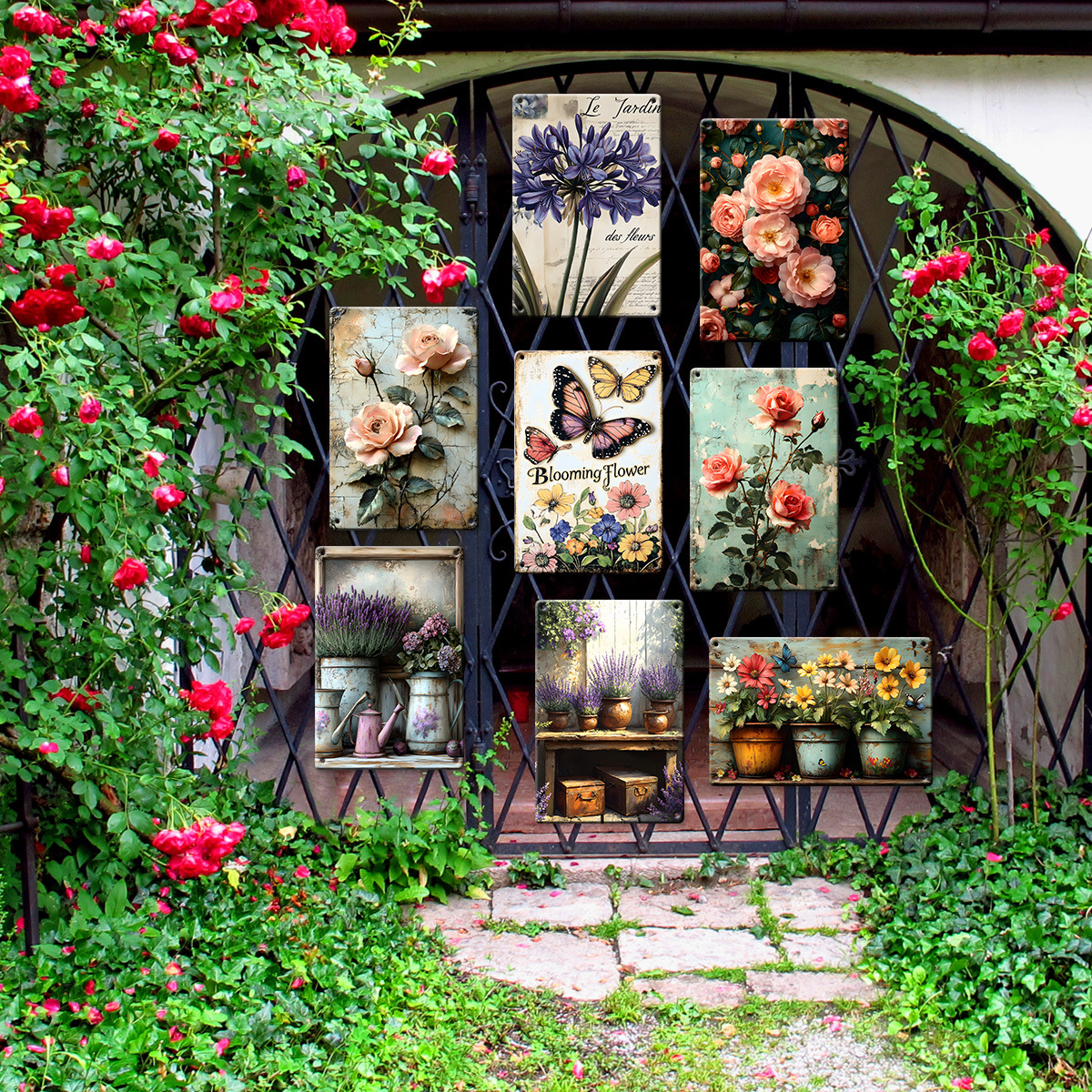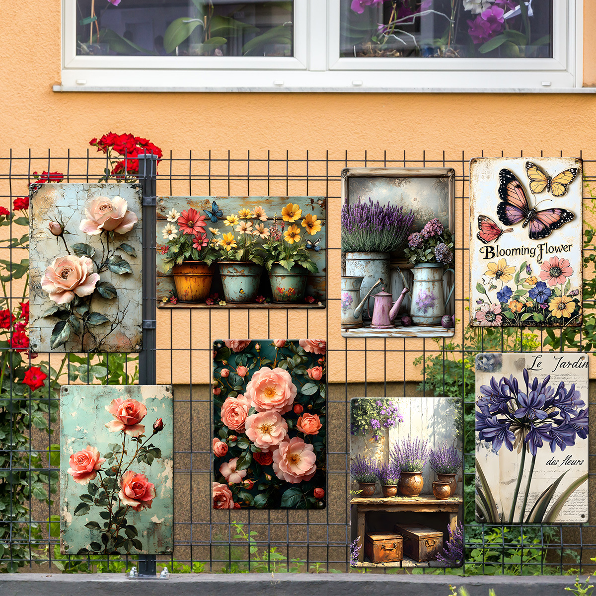 クロスボーダーレトロブリキ絵画中庭ロゴドア番号庭庭師装飾バラ鉢植え蝶ブリキタグ