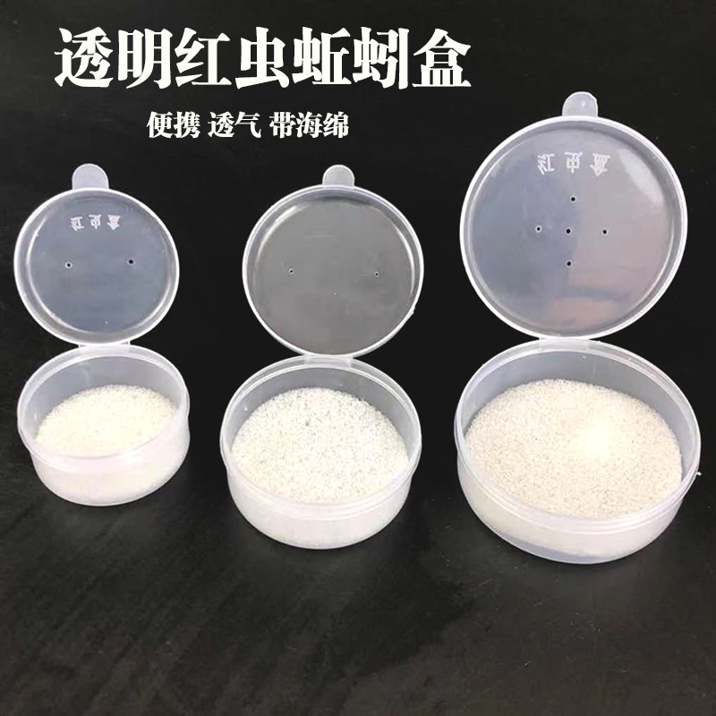 赤虫ボックス 小型丸型ミミズボックス 透明スポンジ 通気性のある穴付き 釣り道具アクセサリー 餌 サンドミミズ餌箱